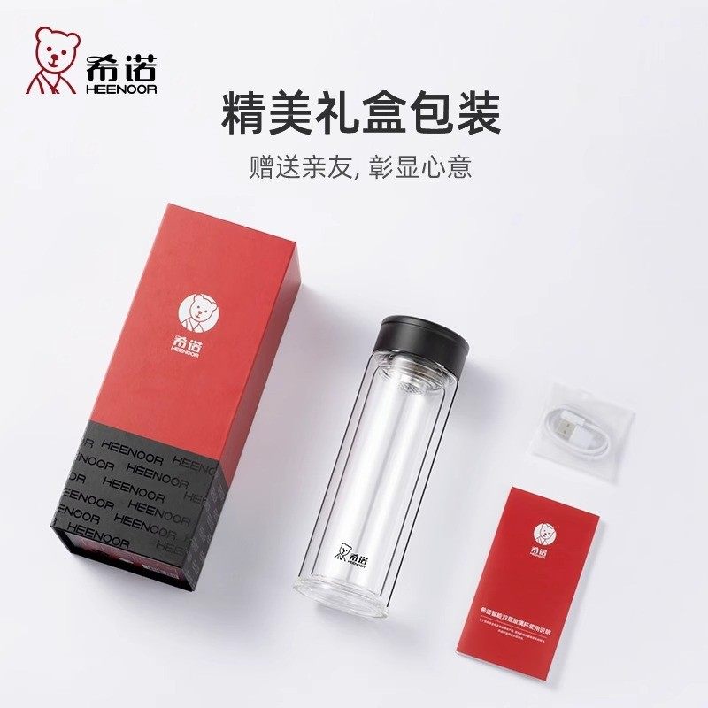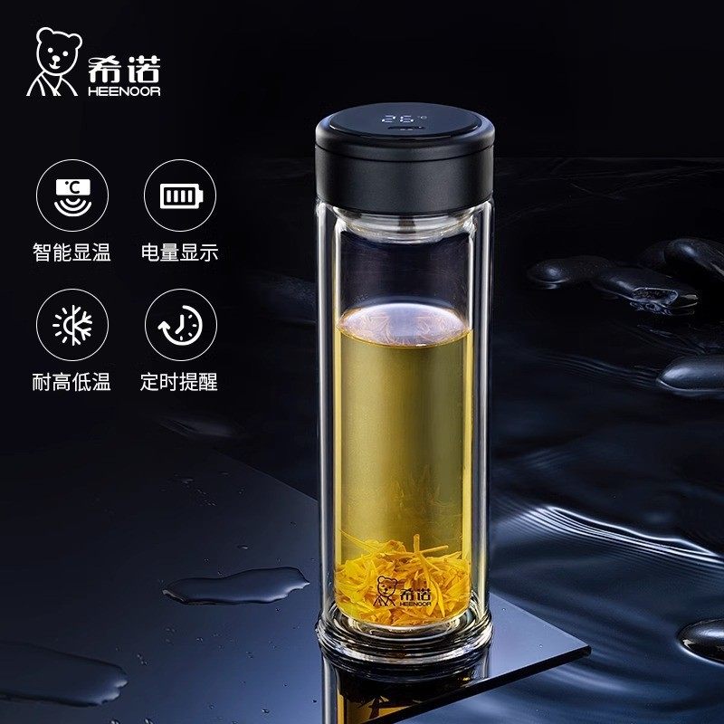 希诺水杯双层玻璃杯智能测温显示温度杯子大容量泡茶杯XN5105印字
