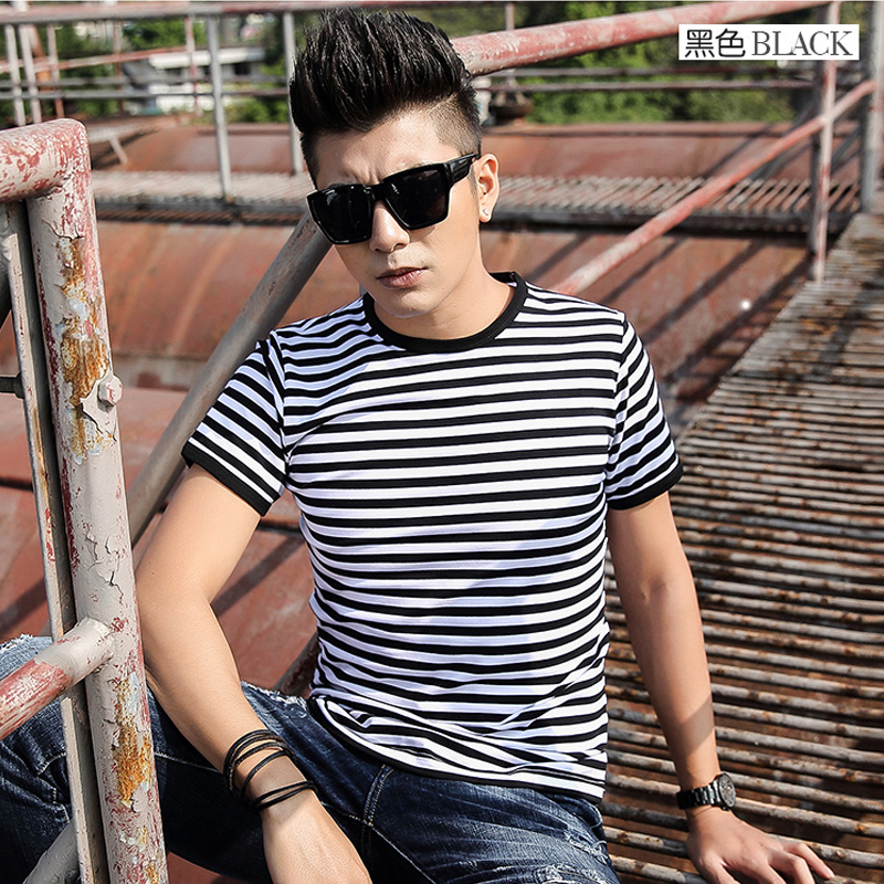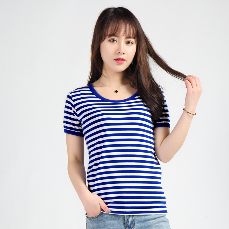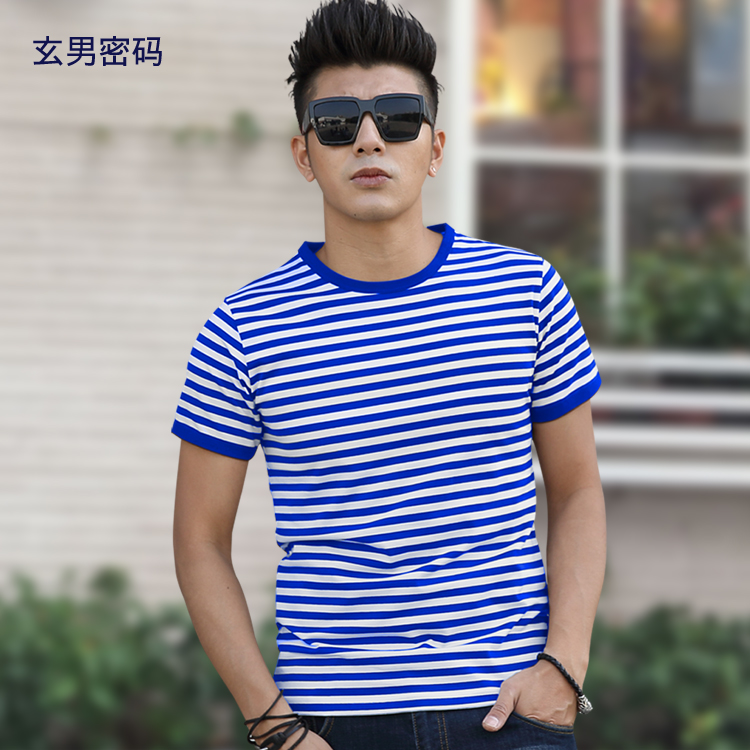 海魂衫男短袖t恤定制修身男女纯棉圆领半袖蓝白条纹情侣装夏季
