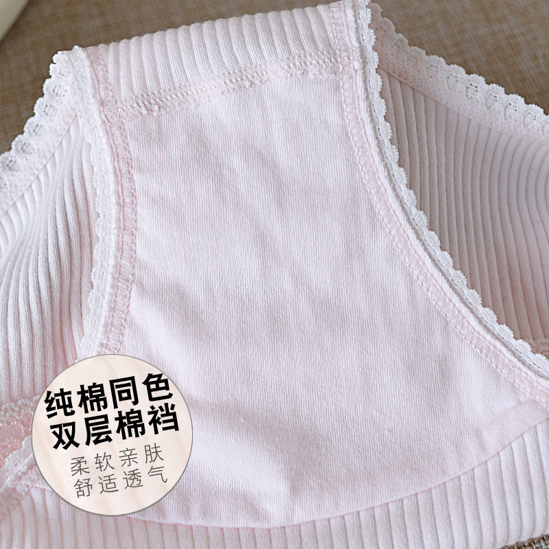4条装日系全棉100内裤女中腰无痕纯棉质面料大码少女蕾丝三角短裤