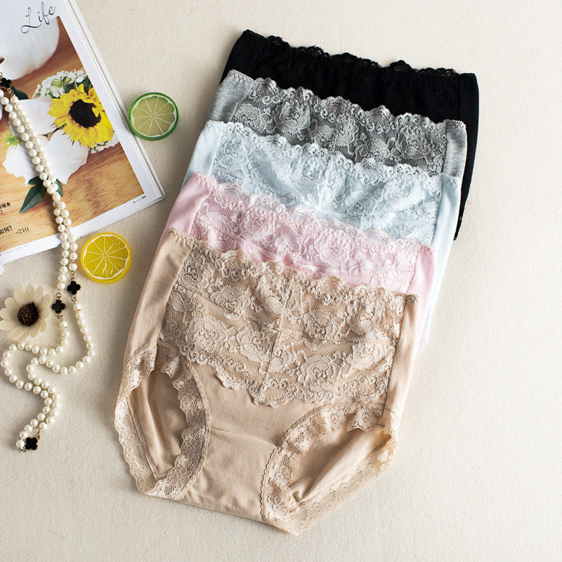 外贸内裤女原单日单出口日本舒适纯棉中腰性感蕾丝收腹透气三角裤