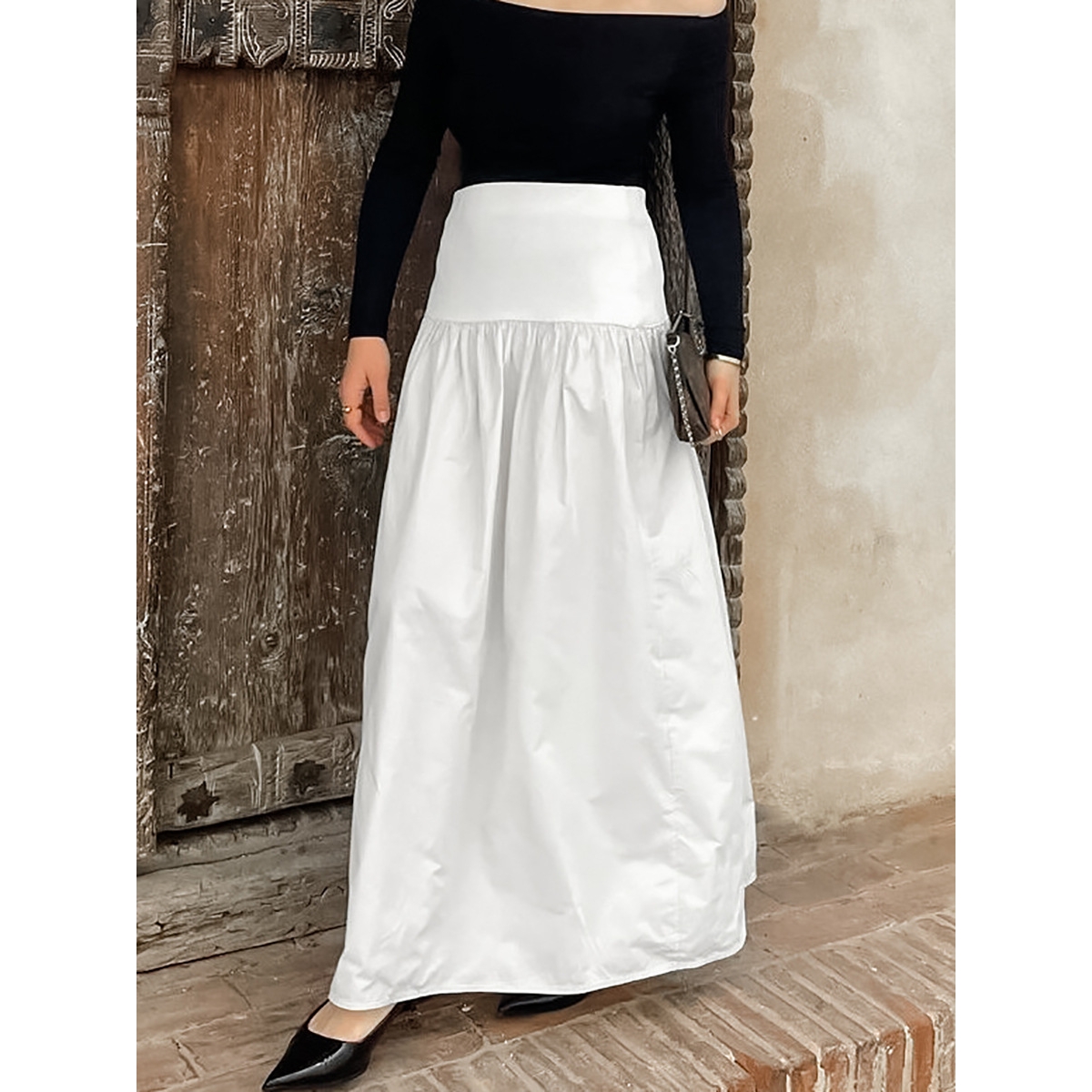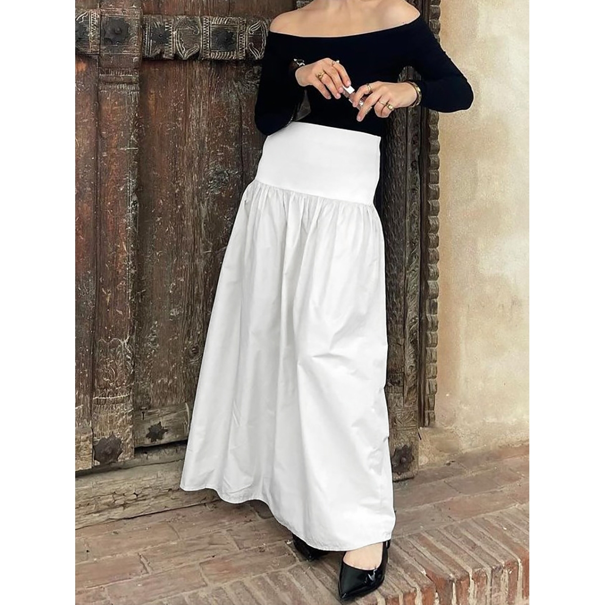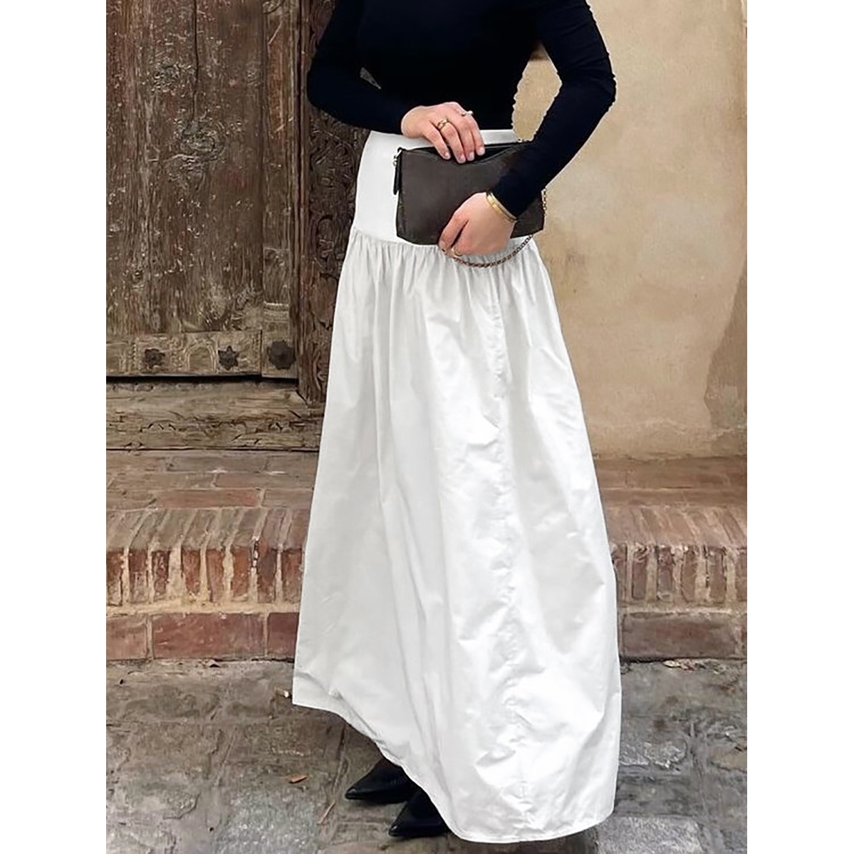 2025秋季法式休闲气质感高腰宽松舒适白色纯棉半身裙百搭时尚长裙