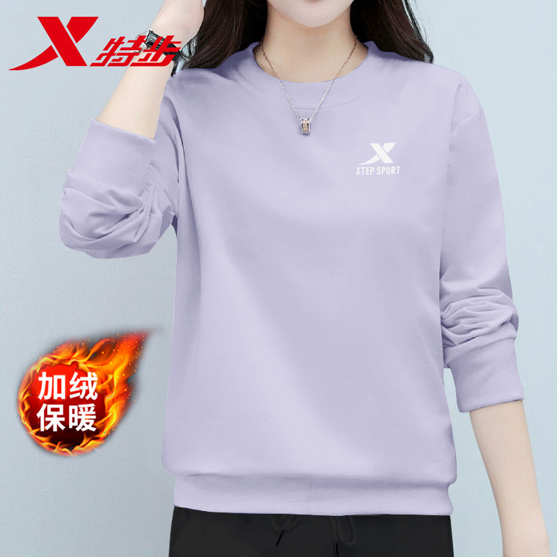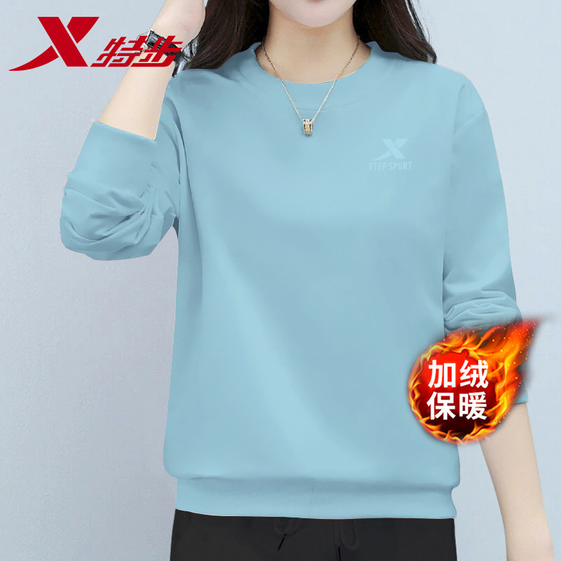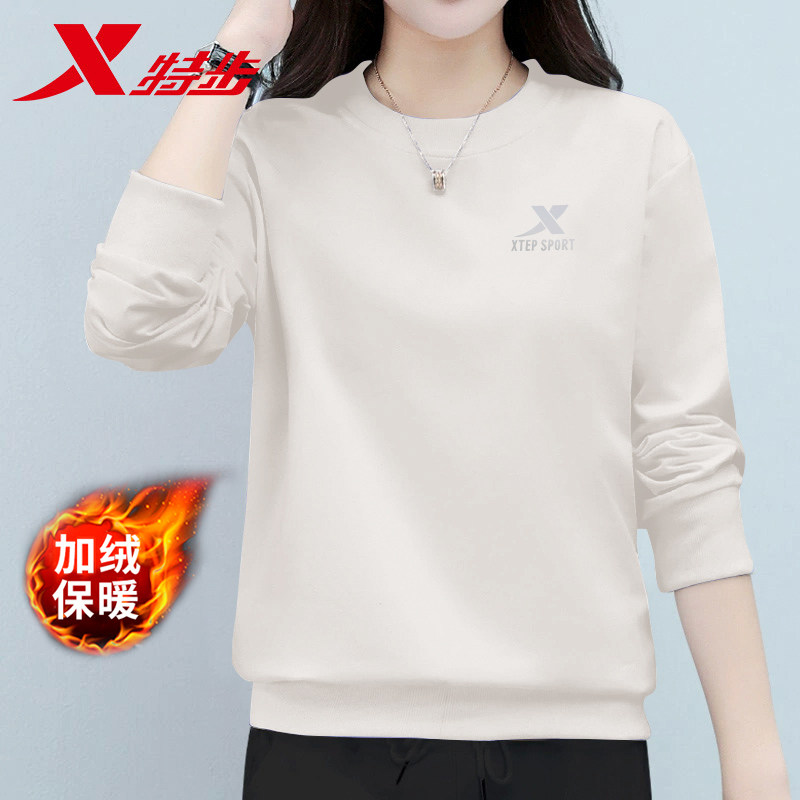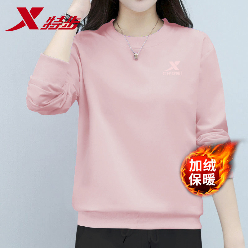 特步加绒卫衣女款冬季保暖上衣官方旗舰店正品纯色休闲运动服长袖