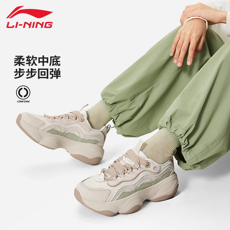 李宁蜜糖V2休闲鞋女款2025春秋新品复古老爹鞋厚底增高学生运动鞋