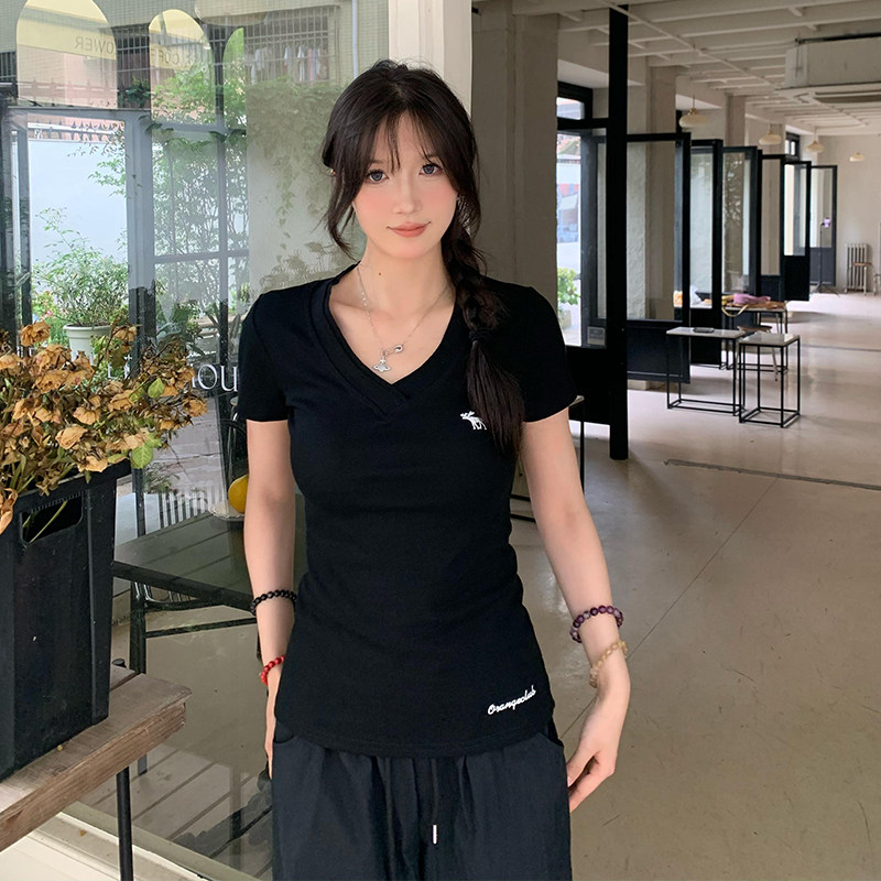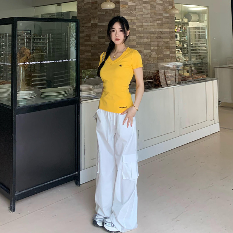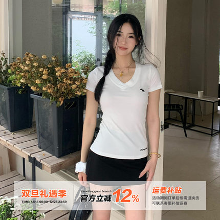 【限时价】橘子树在哪儿v领收腰短袖T恤女夏季款辣妹正肩短款上衣