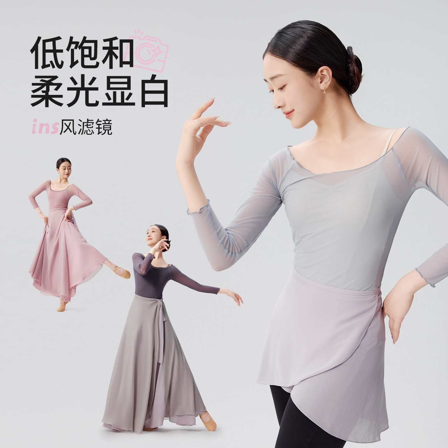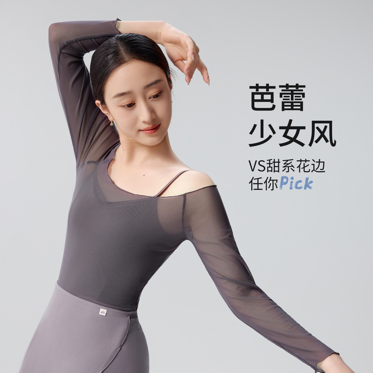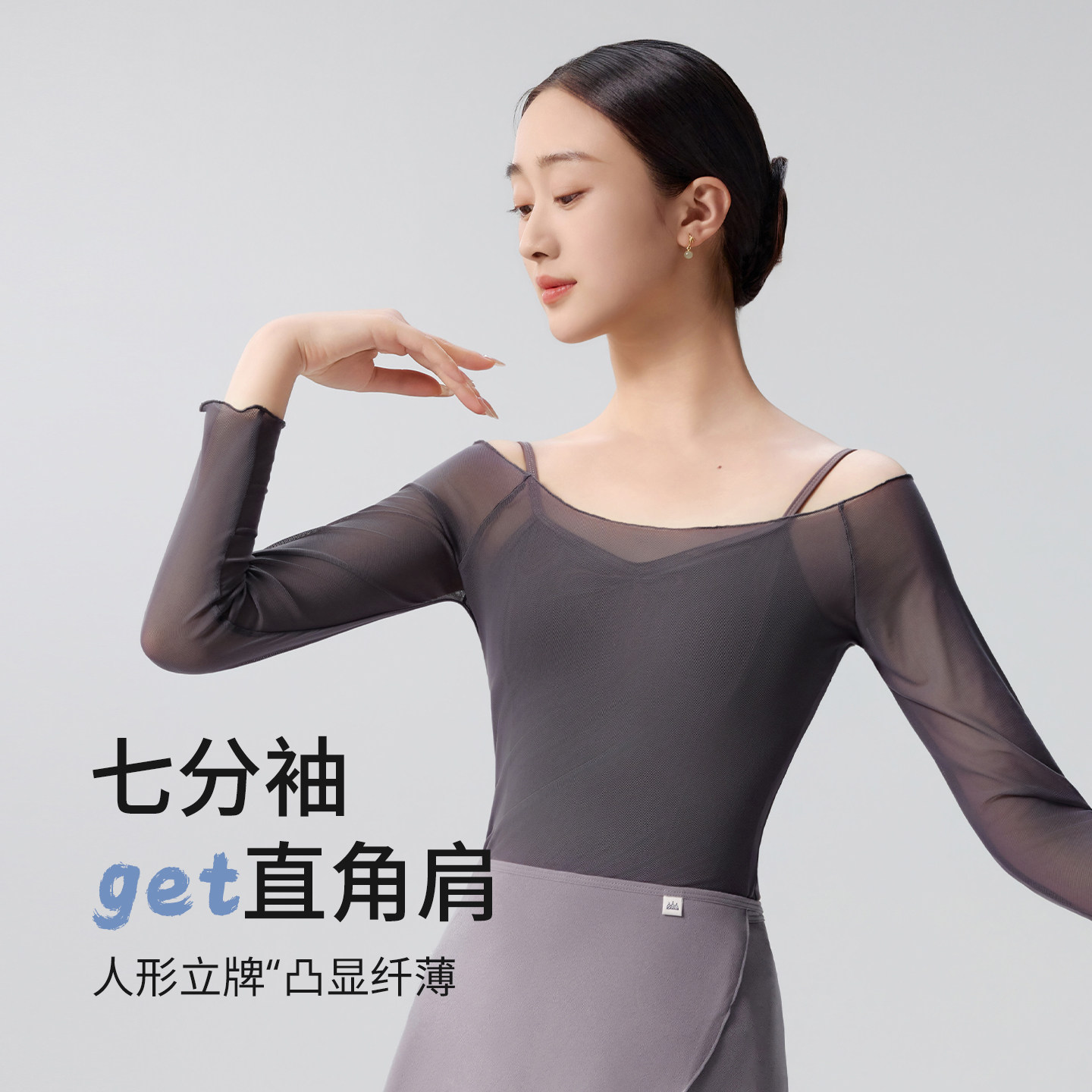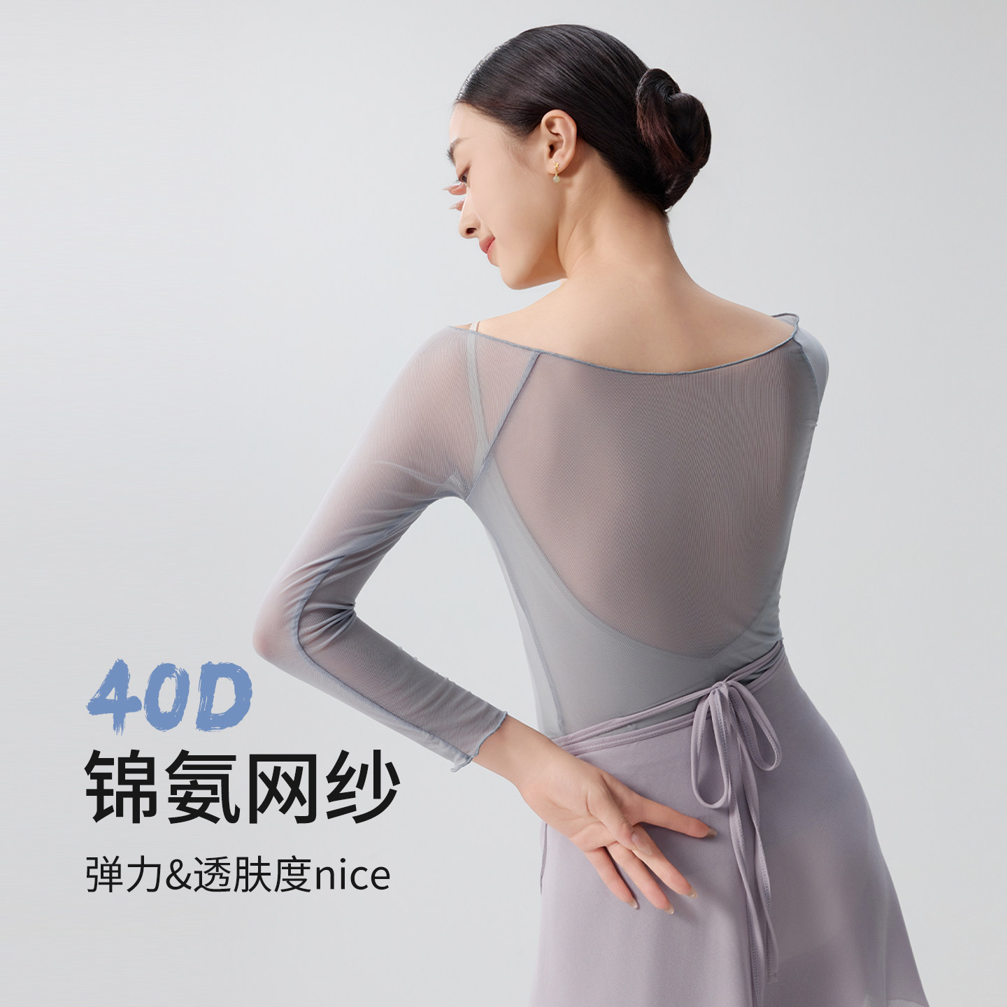 灰雾云纱芭蕾少女风舞蹈上衣