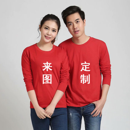 长袖圆领T恤定制印图logo男女棉班服聚会团体服工作服广告衫印字