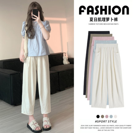 白色冰丝阔腿裤女夏季薄款2026新款高腰九分哈伦裤直筒奶奶萝卜裤