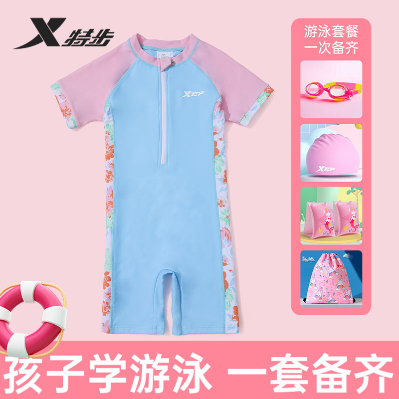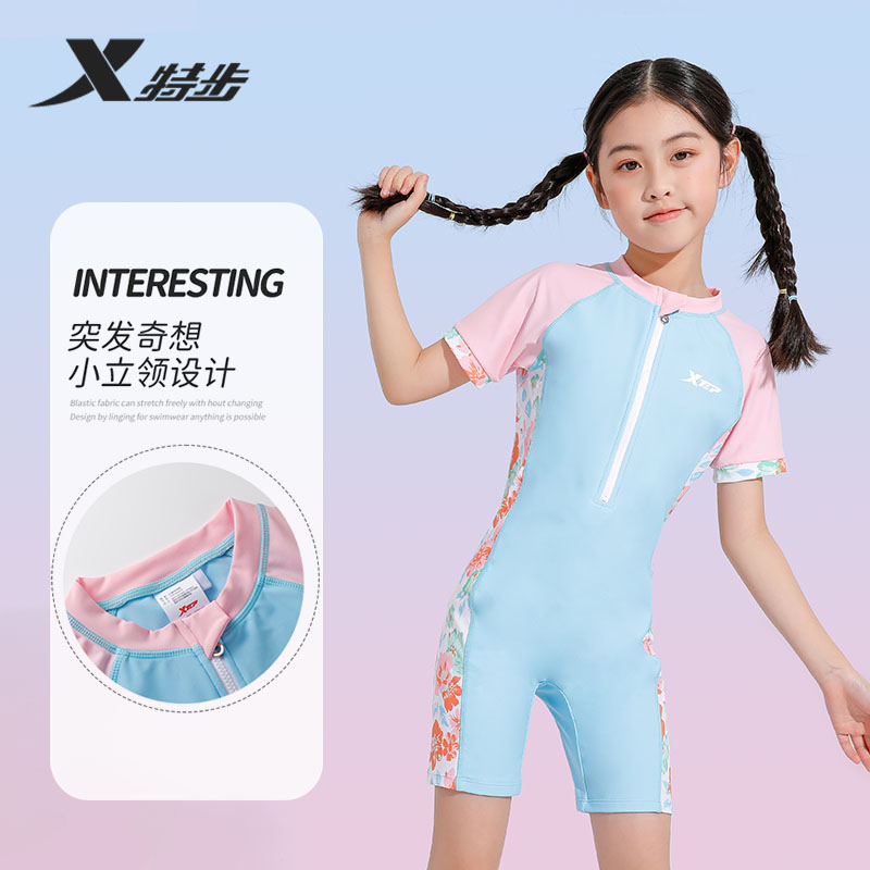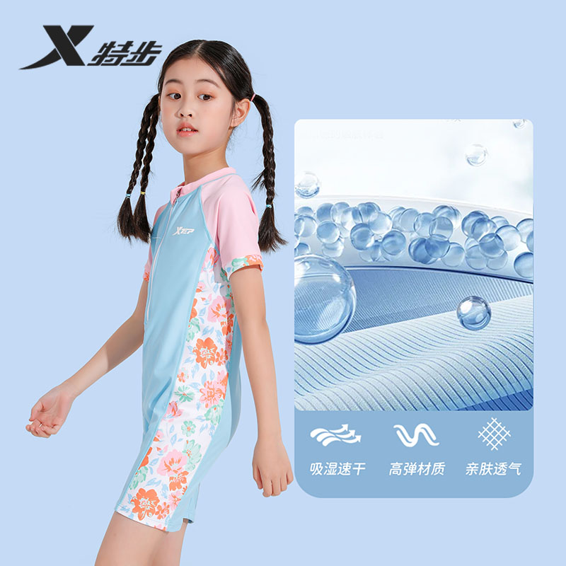 特步儿童泳衣女童2025新款连体舒适防晒速干中大童专业游泳衣女孩