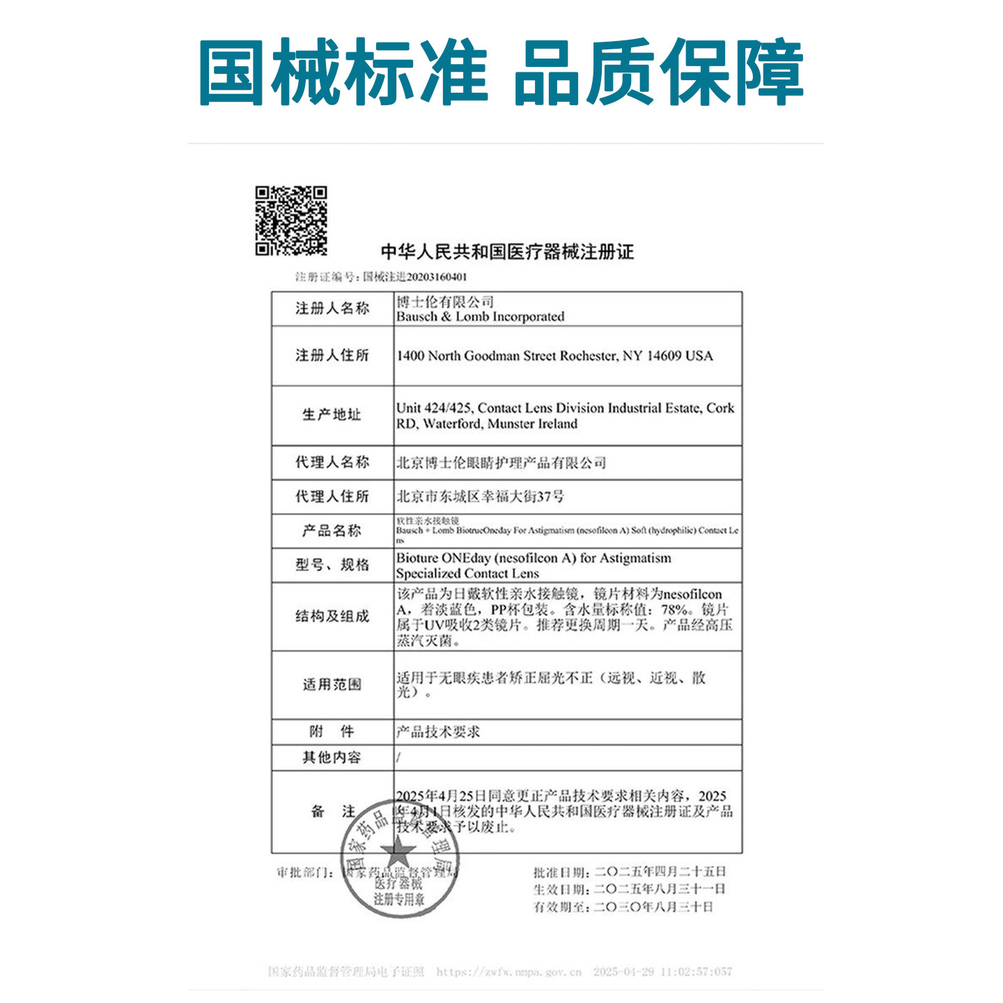博士伦隐形眼镜散光定制博乐纯日抛30片散光带近视镜片硅水凝胶AM