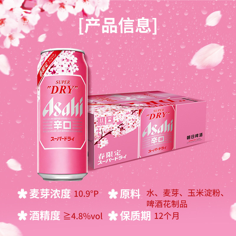 【新品上市】Asahi朝日超爽生啤酒500ml*4*6罐/箱 樱花春日限定版