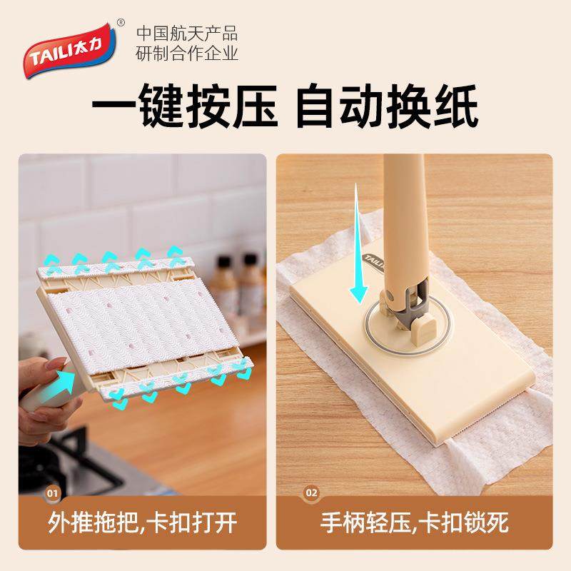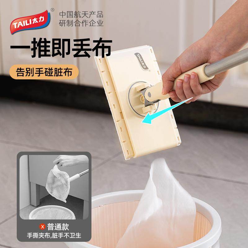 太力夹固式湿纸巾拖把木地板拖布瓷砖家用夹布地拖墩布尘推平拖把