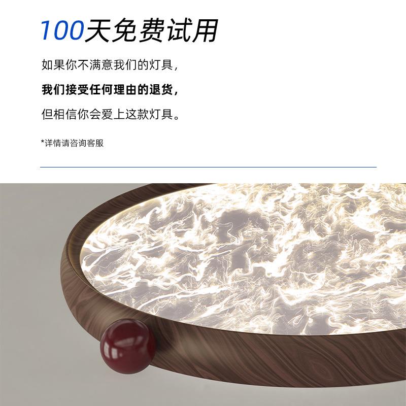 卧室吸顶灯中古风胡桃色美式复古简约圆形云雾护眼书房间中山灯具