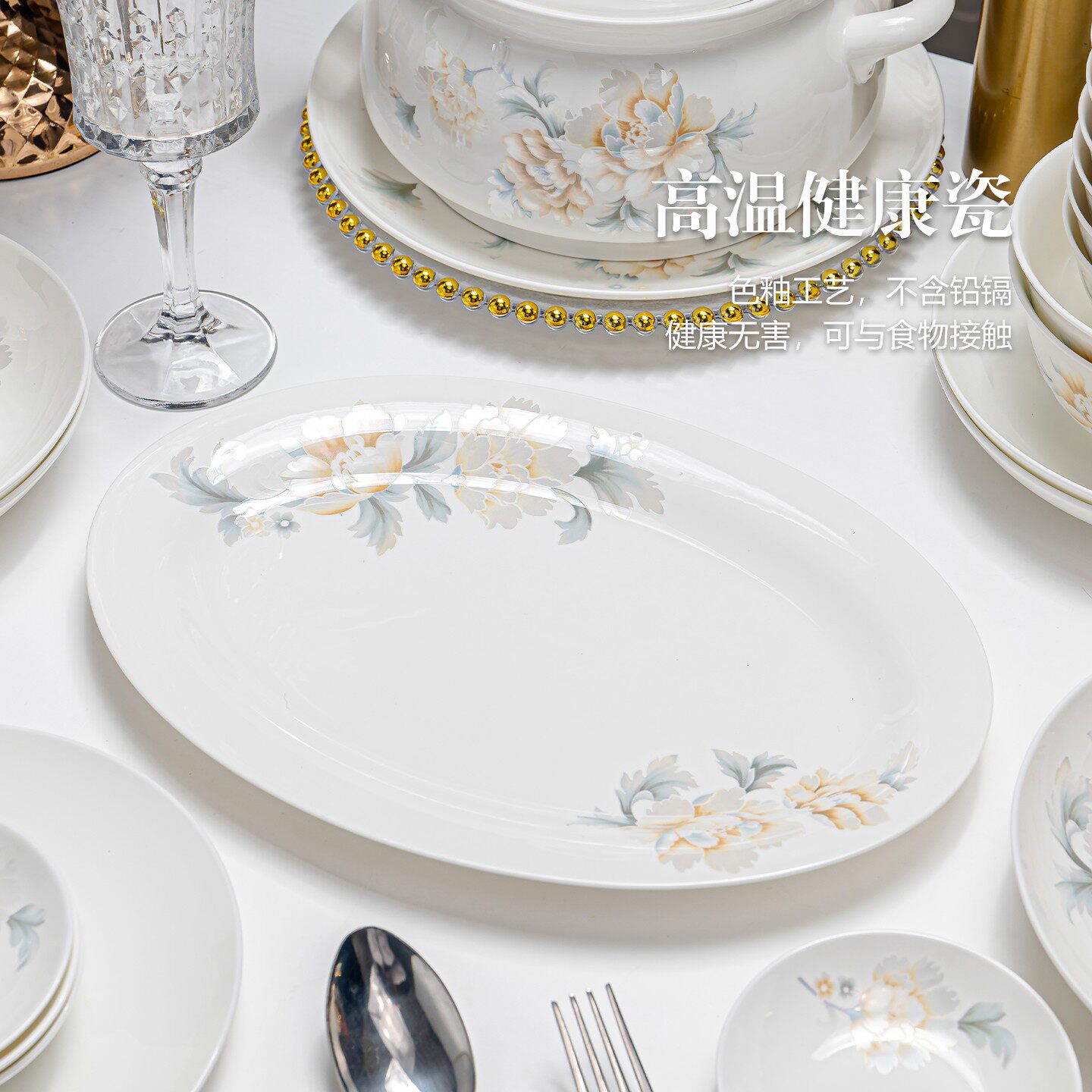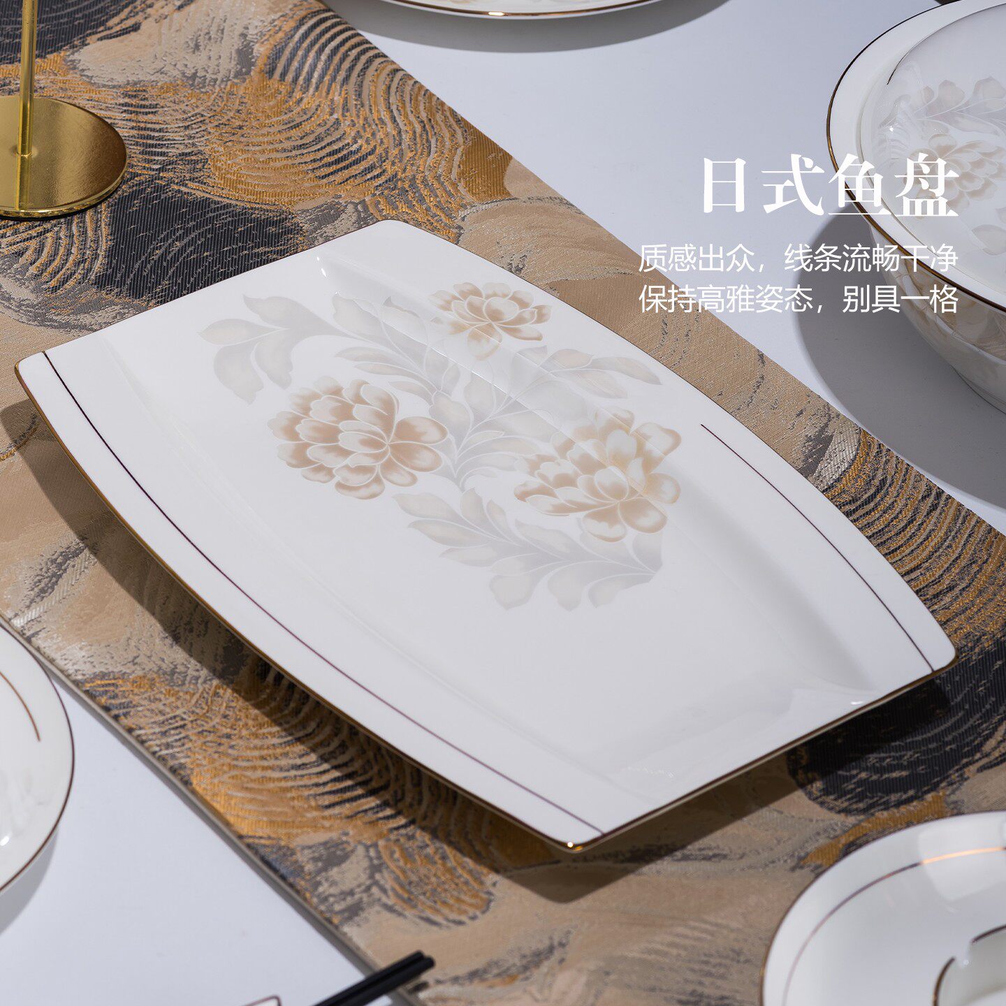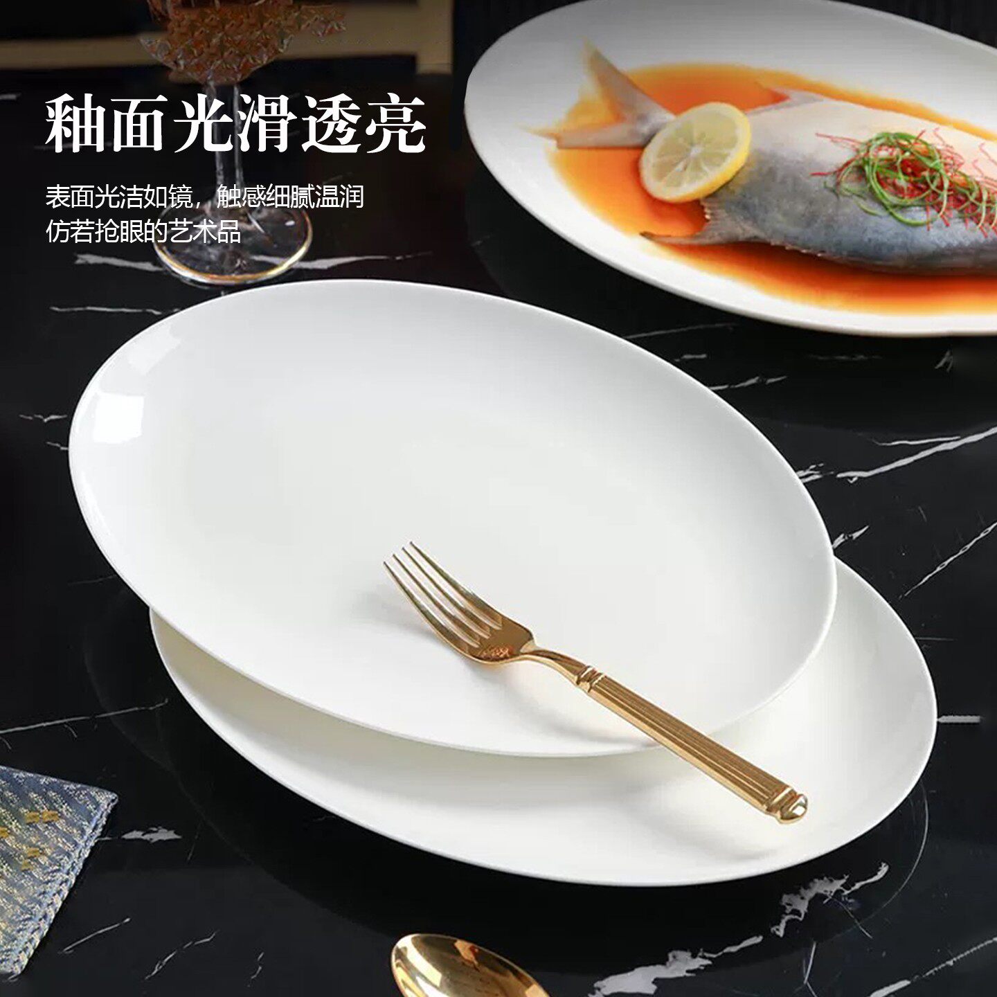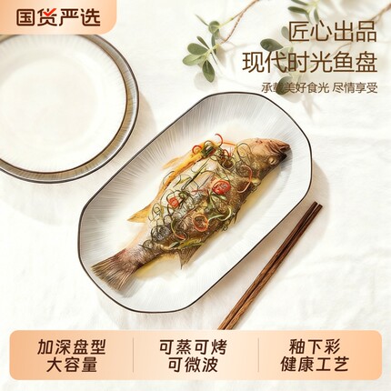 红盘创意大盘餐厅金边网椭圆形长方形盘蒸鱼菜盘家用碟鱼骨瓷商用