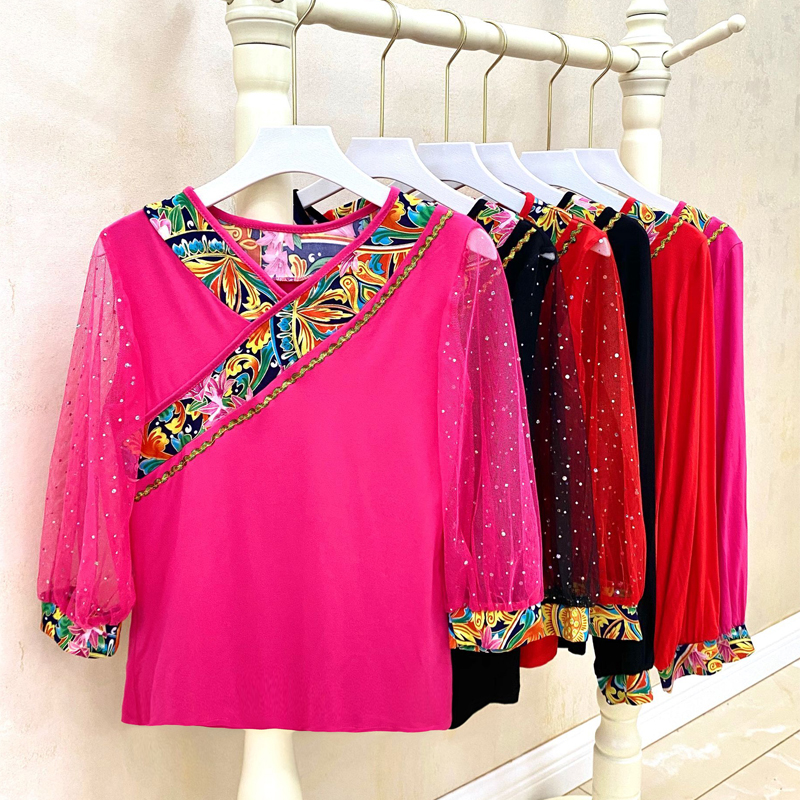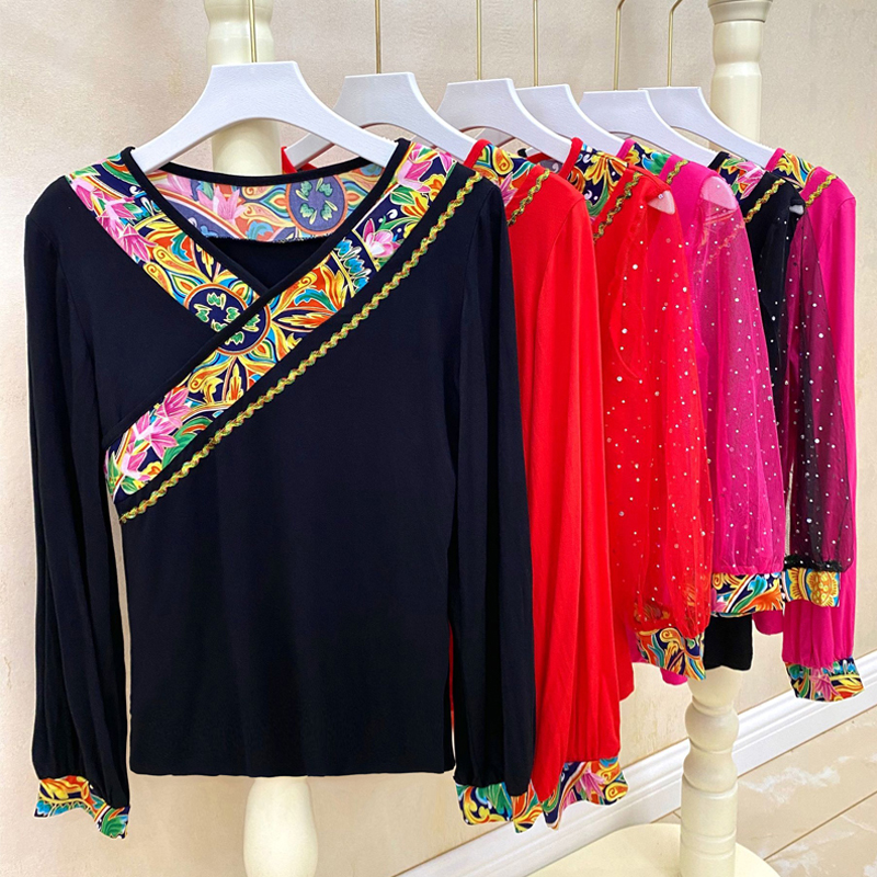 跳舞衣服女广场舞上衣单件舞蹈舞衣民族服装藏族新款中老年现代舞