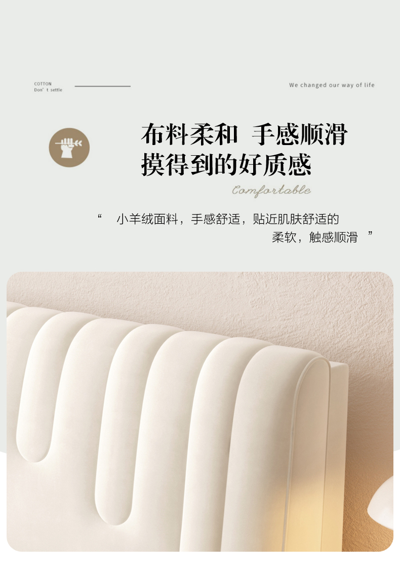 达芬罗奶油风床头软包靠垫榻榻米粘贴大靠背小羊绒卧室靠枕可拆洗