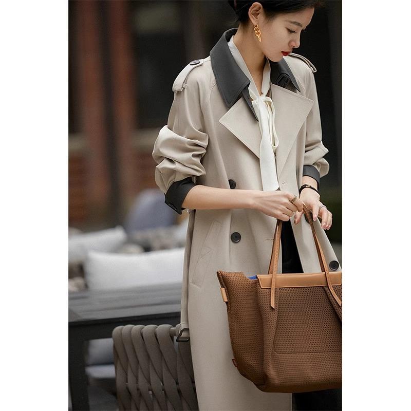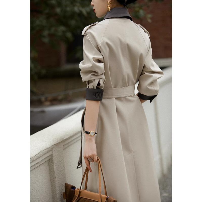 米色风衣外套女2025春秋季新款韩版高端气质双排扣撞色中长款大衣