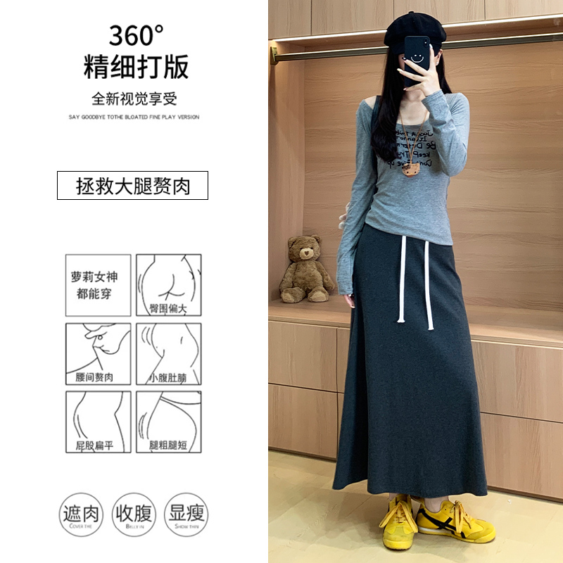 灰色半身裙女2025新款秋季高腰显瘦a字中长款垂感宽松包臀鱼尾裙