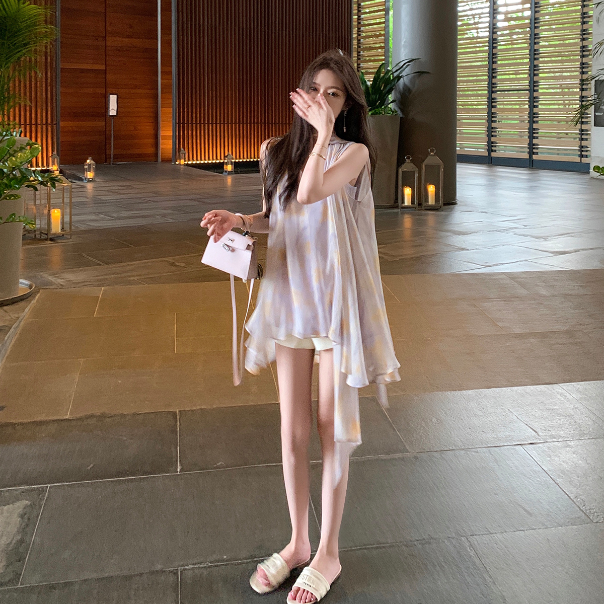 ByYou2025新款夏季白色a字西装短裤女显瘦高腰热裤宽松阔腿休闲裤