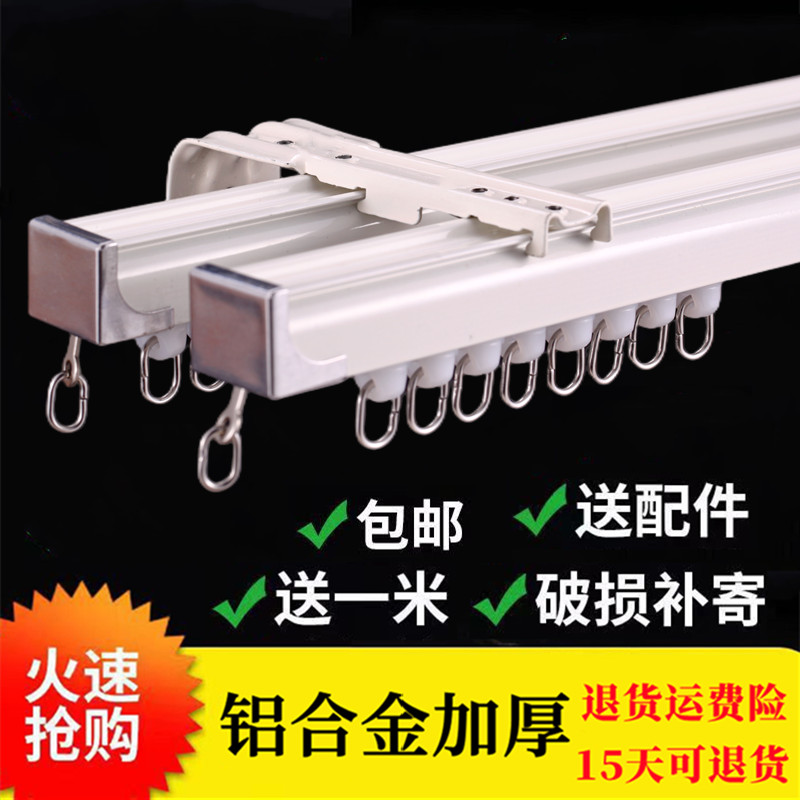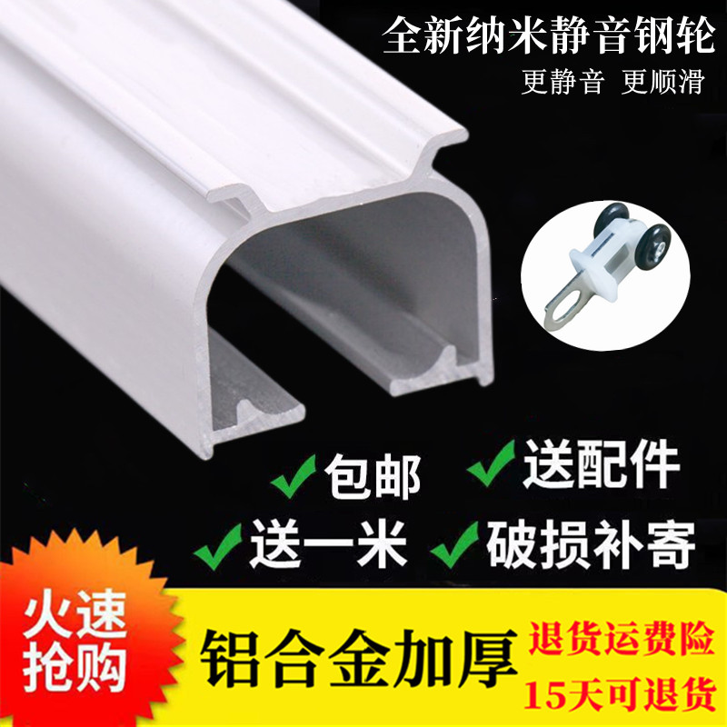 窗帘轨道挂钩式窗帘杆滑轨滑轮静音客I厅阳台飘窗铝合金双轨侧装