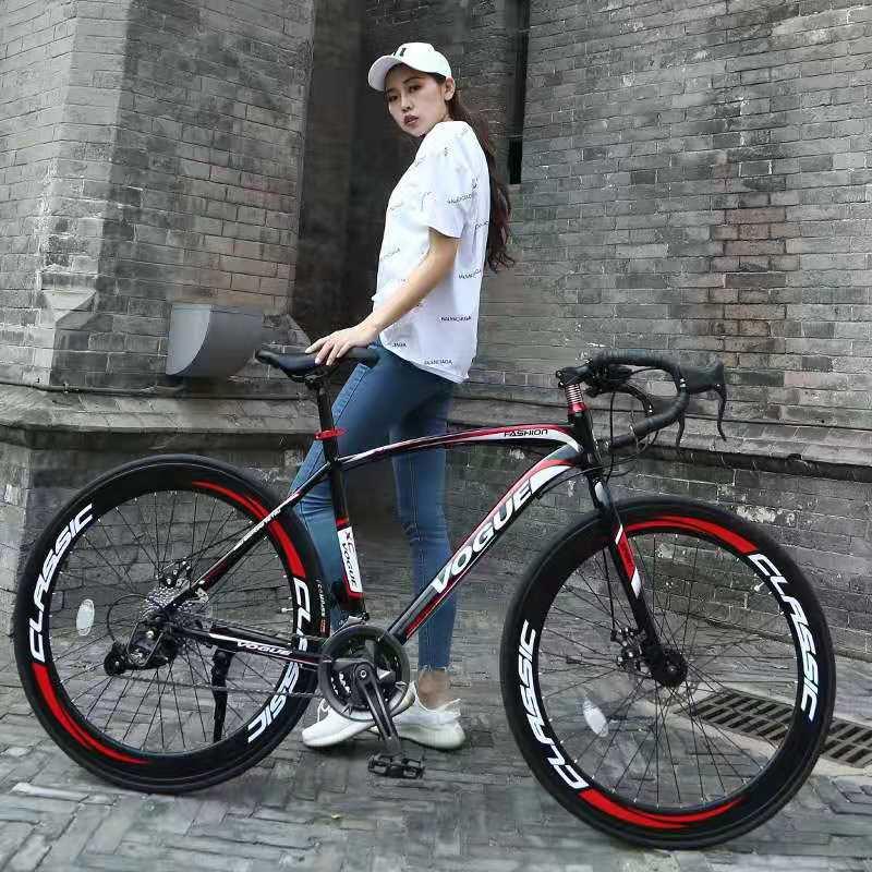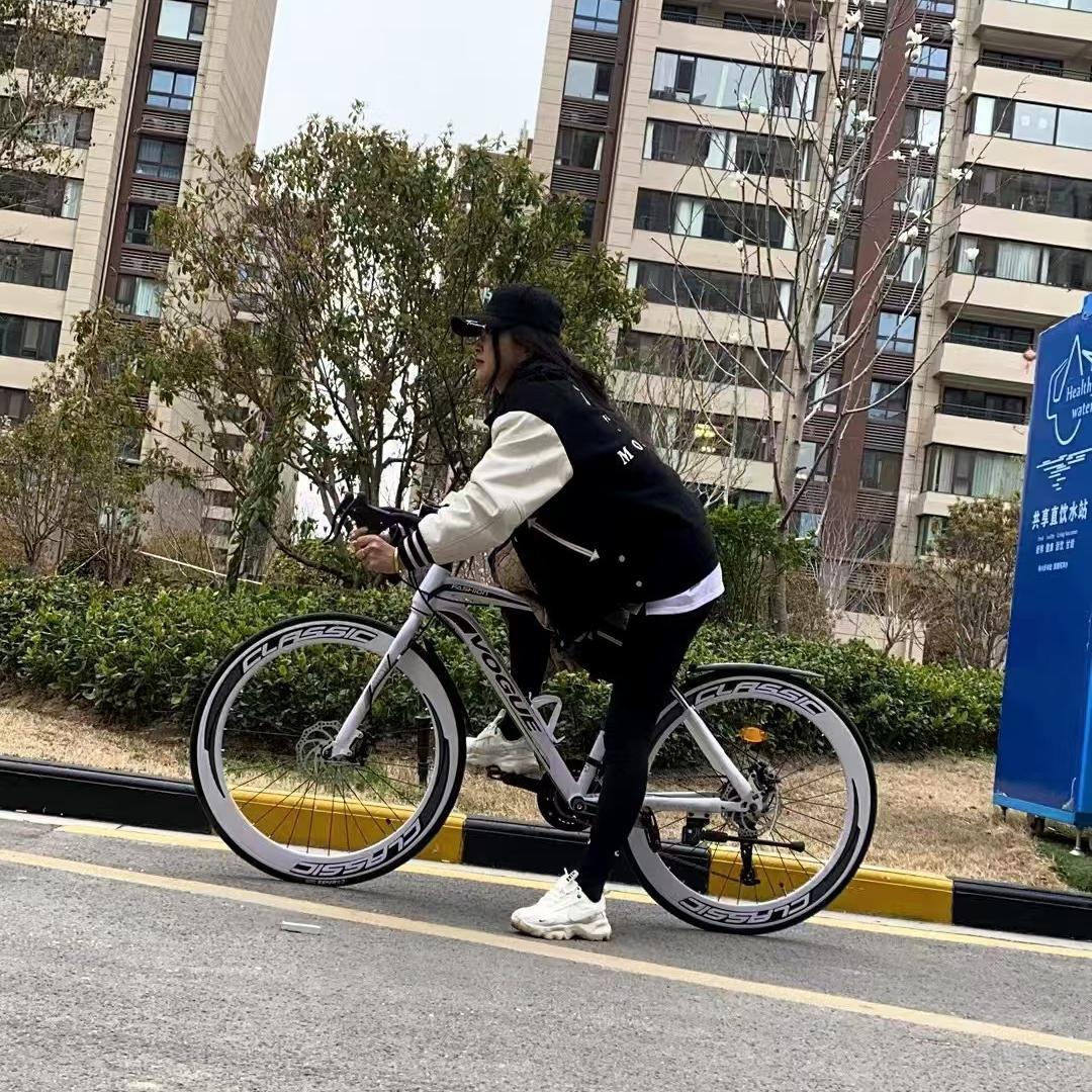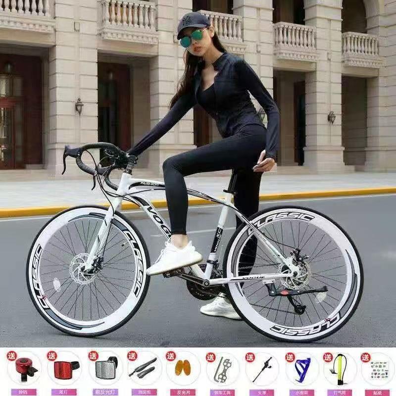 公路变速自行车男款竞速越野弯把跑赛学生双碟刹荧光女士死飞单车