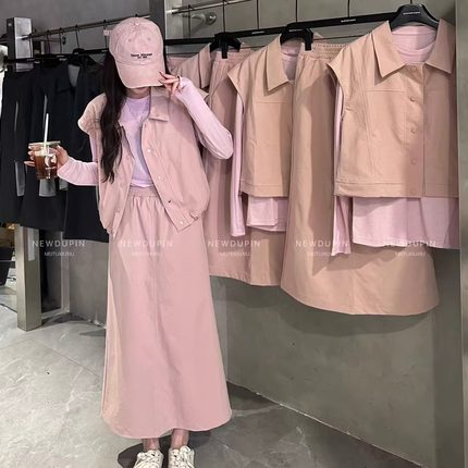 特价独品韩版马甲背心长袖T恤A字半身长裙休闲套装女春新款三件套