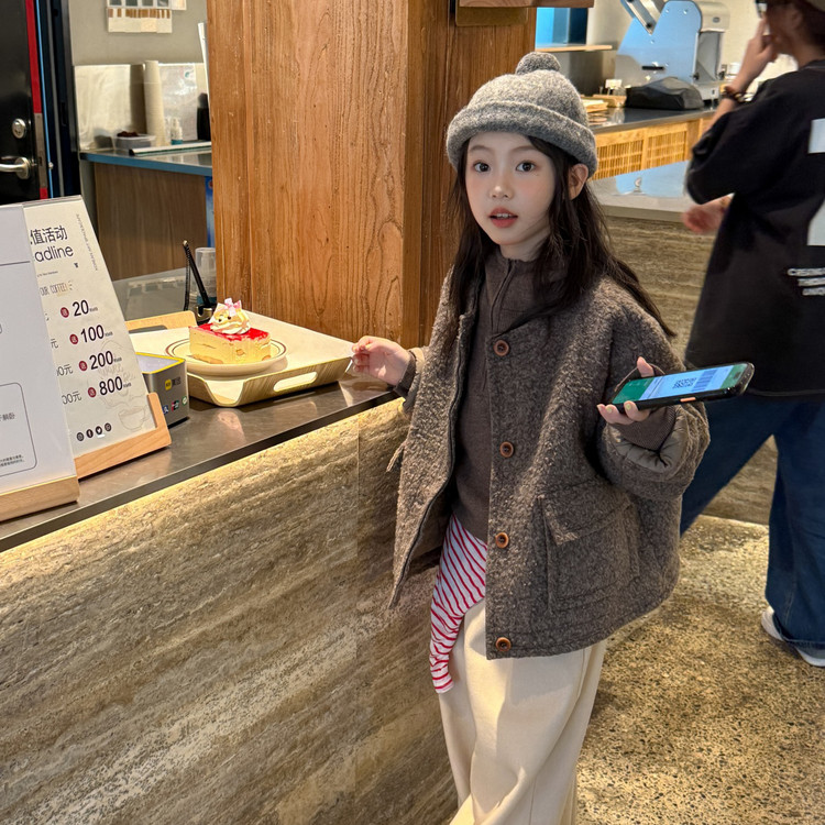 女童羊羔绒外套秋冬装2025新款