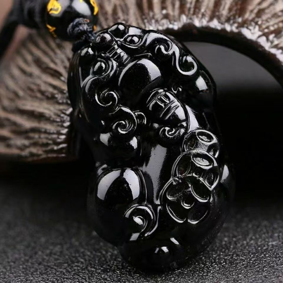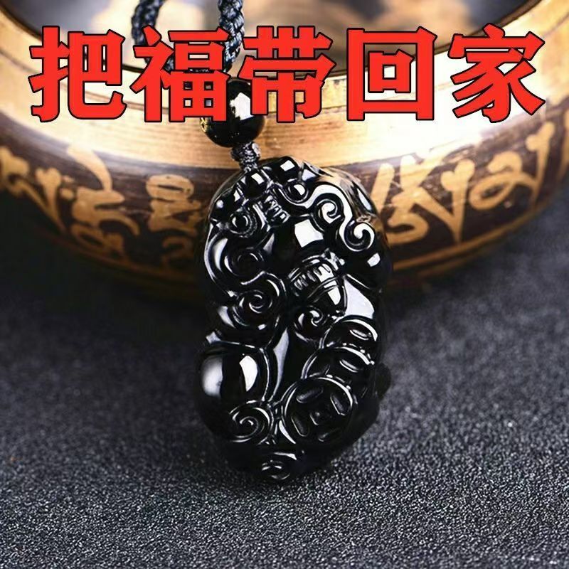黑曜石三钱貔貅招财转运吊坠男女款貔貅纳福皮丘玉石车挂项链挂件