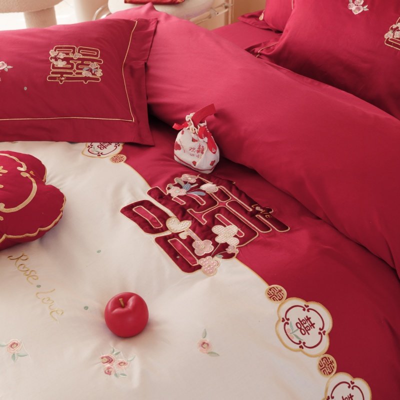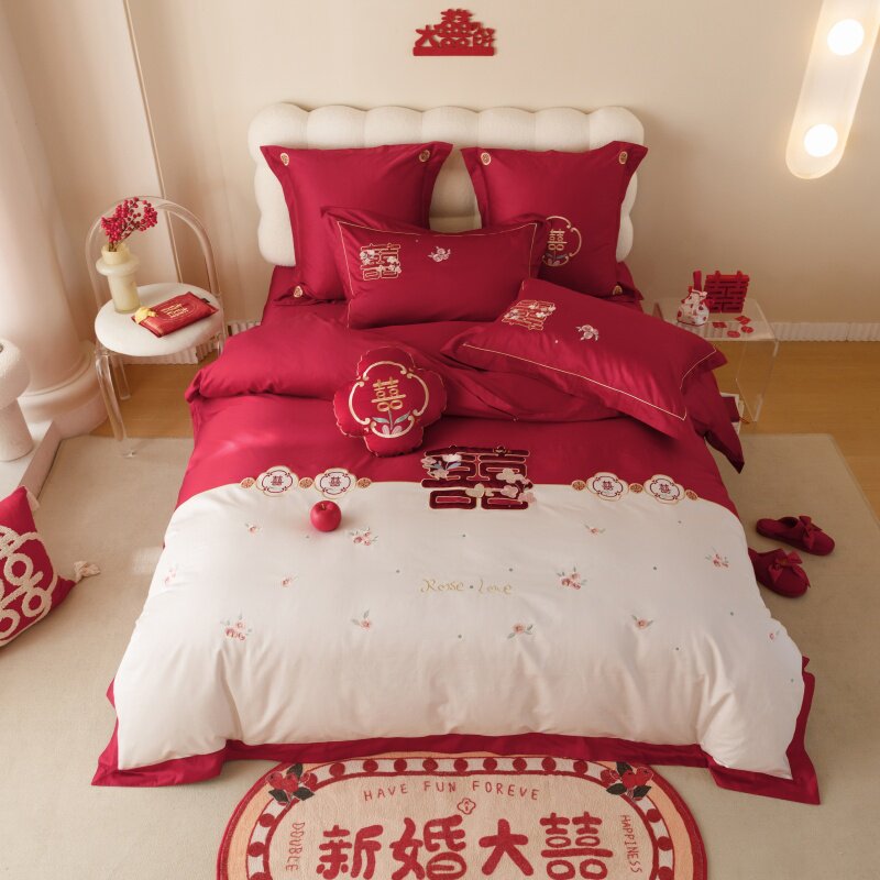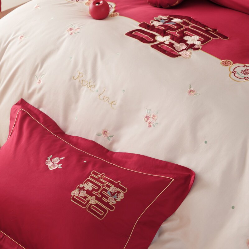 高端纯棉结婚四件套新婚全棉长绒棉刺绣被套床单婚庆套件