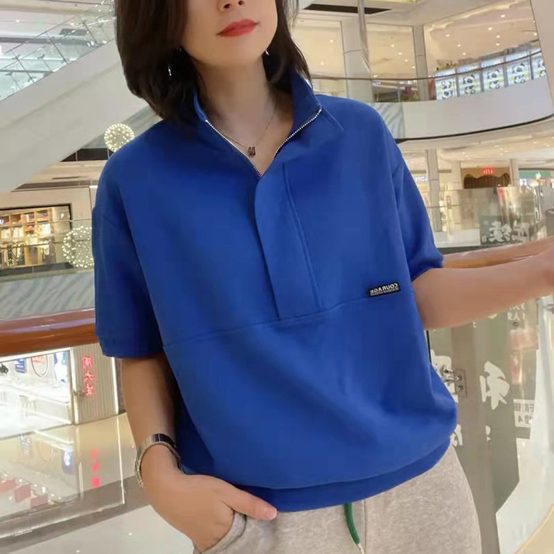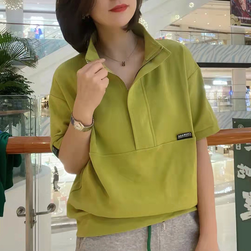 立领卫衣宽松显瘦打底衫休闲套头拉链T恤大码通勤胖妹遮肉女上衣T