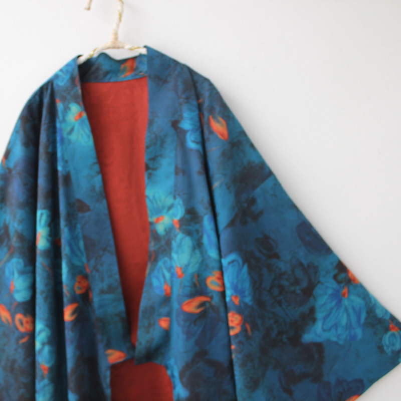袁落落/女装 印花日系复古改良和风长款宽松外套开衫小振袖羽织