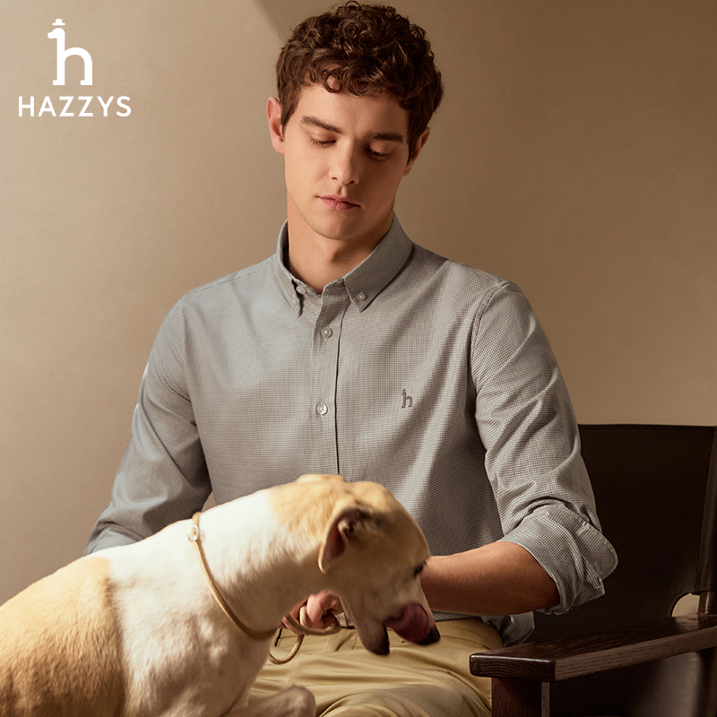 Hazzys哈吉斯秋季新品男士长袖衬衫英伦格子纯棉休闲衬衣男装潮流