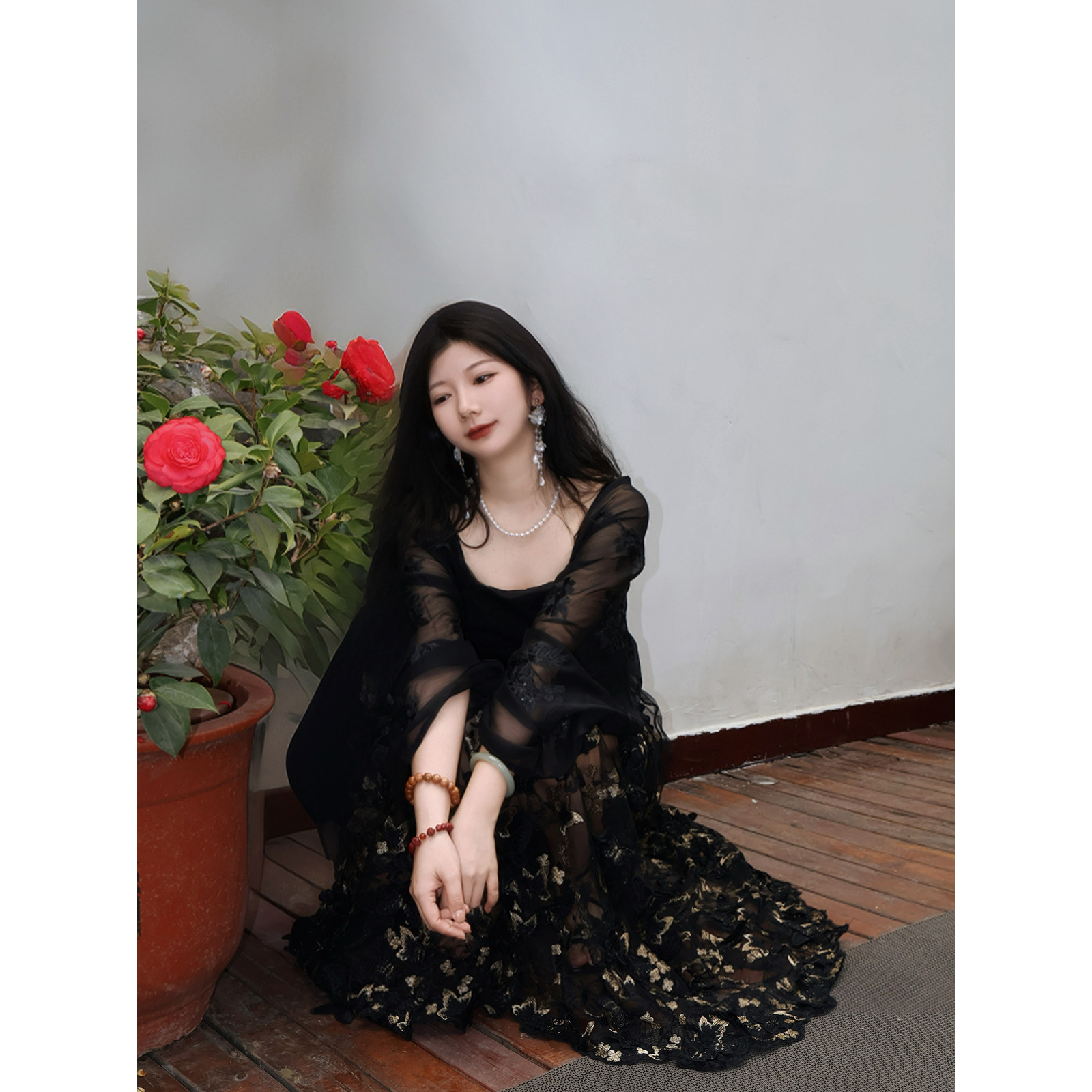 真大鱼大小码原创【焰火】新中式国风复古立体蝴蝶连衣裙吊带裙子
