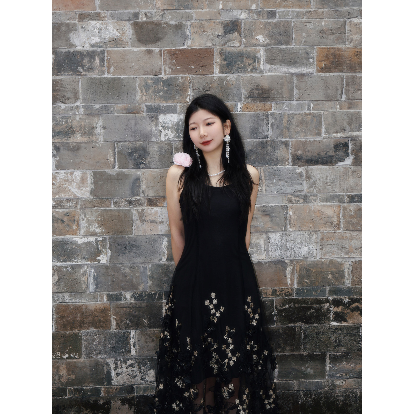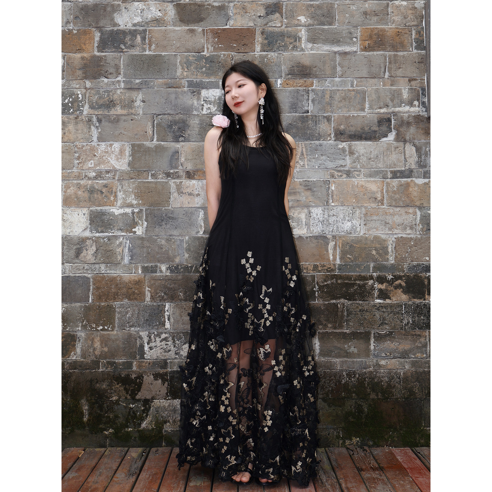 复古立体蝴蝶连衣裙吊带裙子