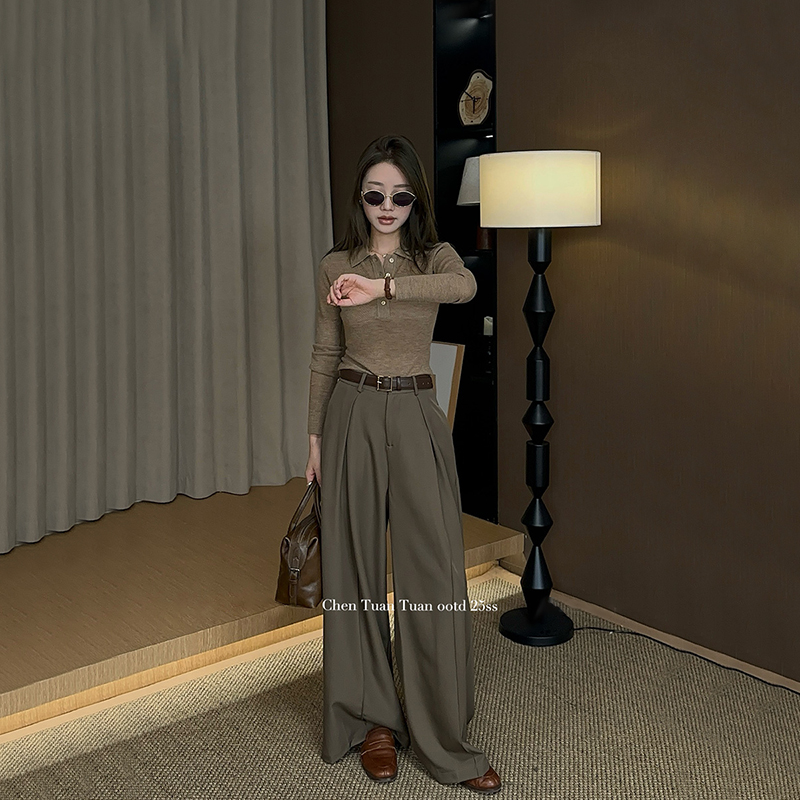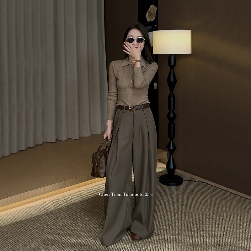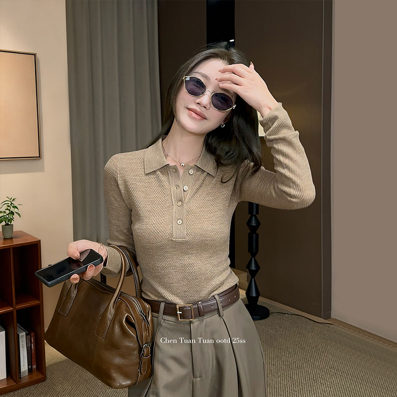 陈团团TUAN"鱼骨纹织"复古POLO立领仿毛针织衫毛衣纯欲修身百搭