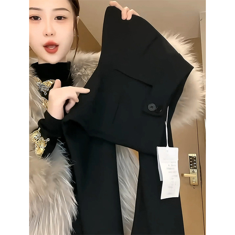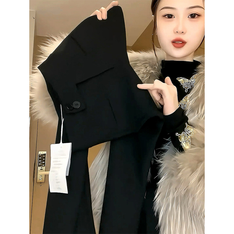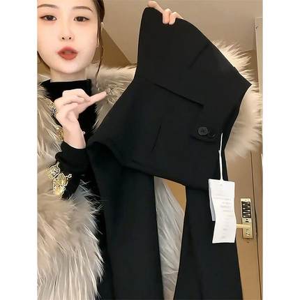 西装裤女春秋2025新款马蹄裤黑色显瘦微喇叭裤休闲高腰拖地长裤子