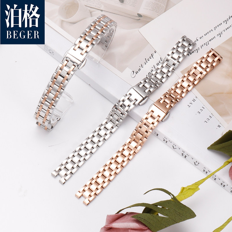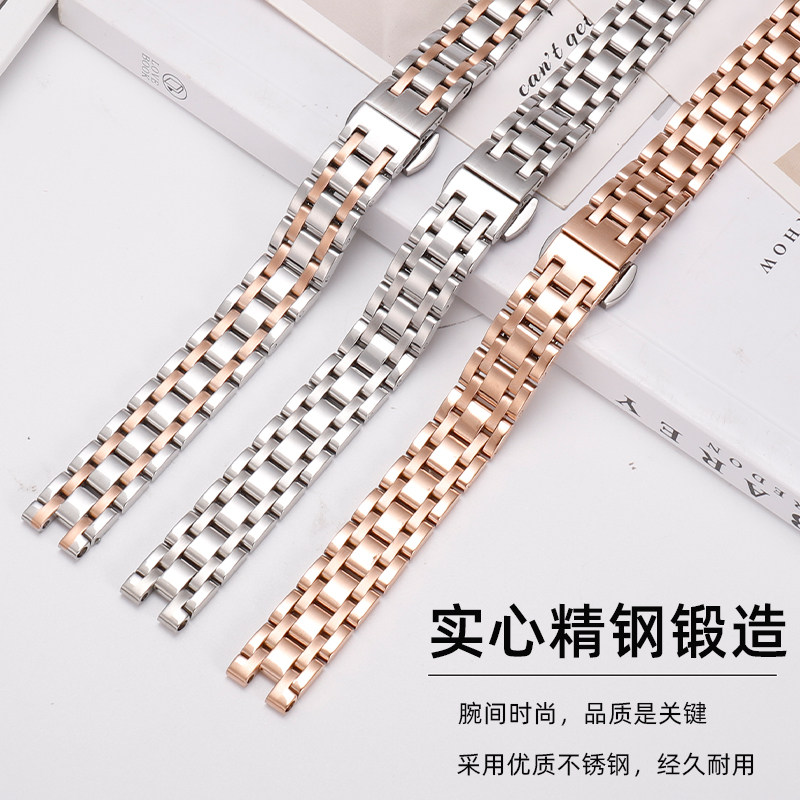 代用天梭T126嘉丽小美人1853表带T126010A实心精钢女表带链12mm