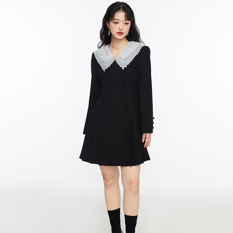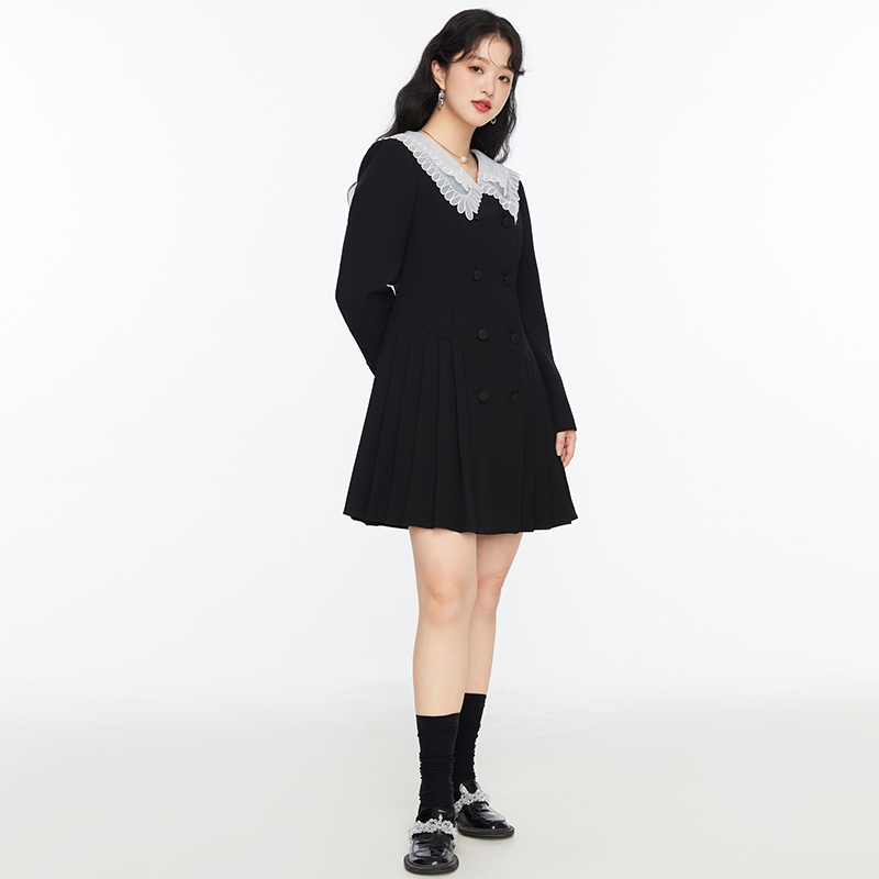 GW大码女装学院风蕾丝海军领百褶连衣裙2025秋季新款胖mm显瘦裙子
