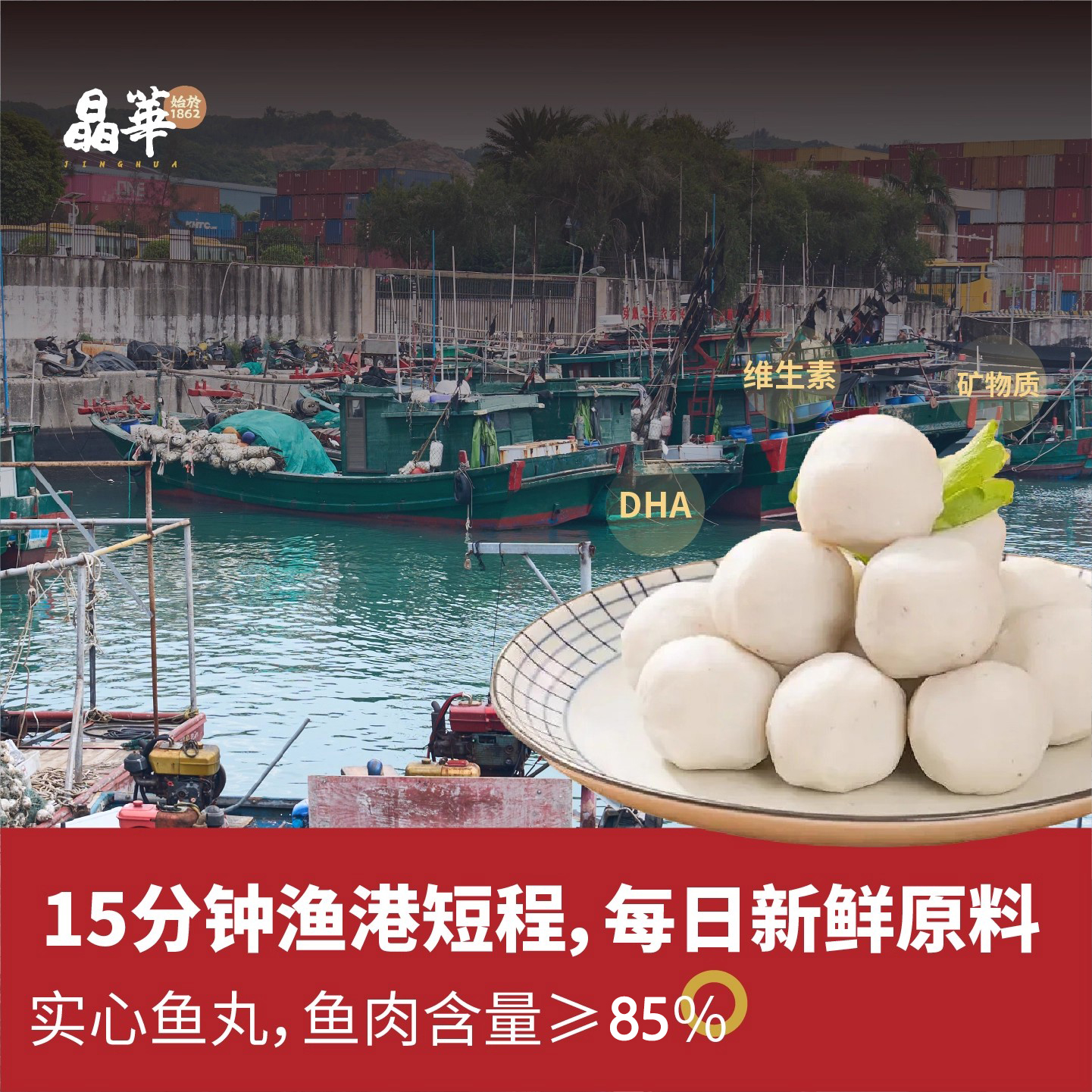 晶华鱼丸潮汕特产正宗手工鱼丸汕头手打鱼蛋实心鱼圆海鲜火锅丸子