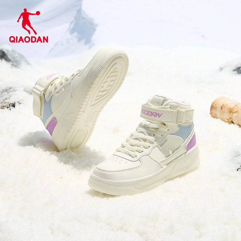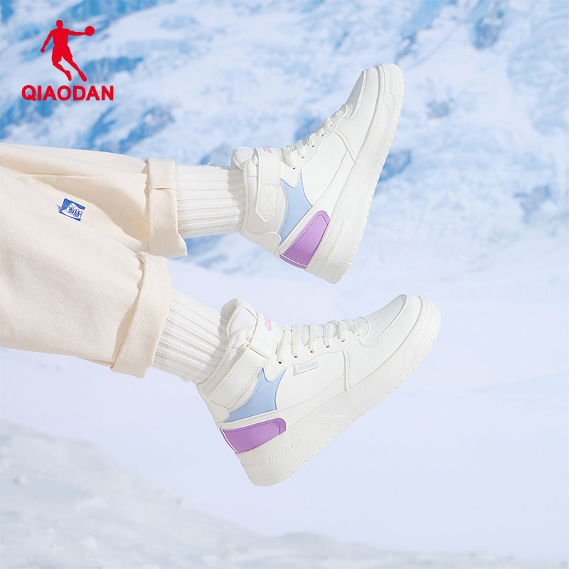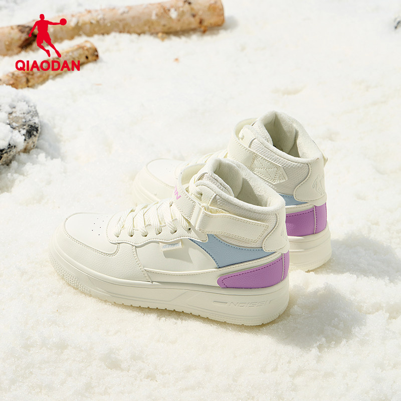乔丹加绒棉鞋女2025年冬季新款运动高帮板鞋保暖紫色休闲鞋女子