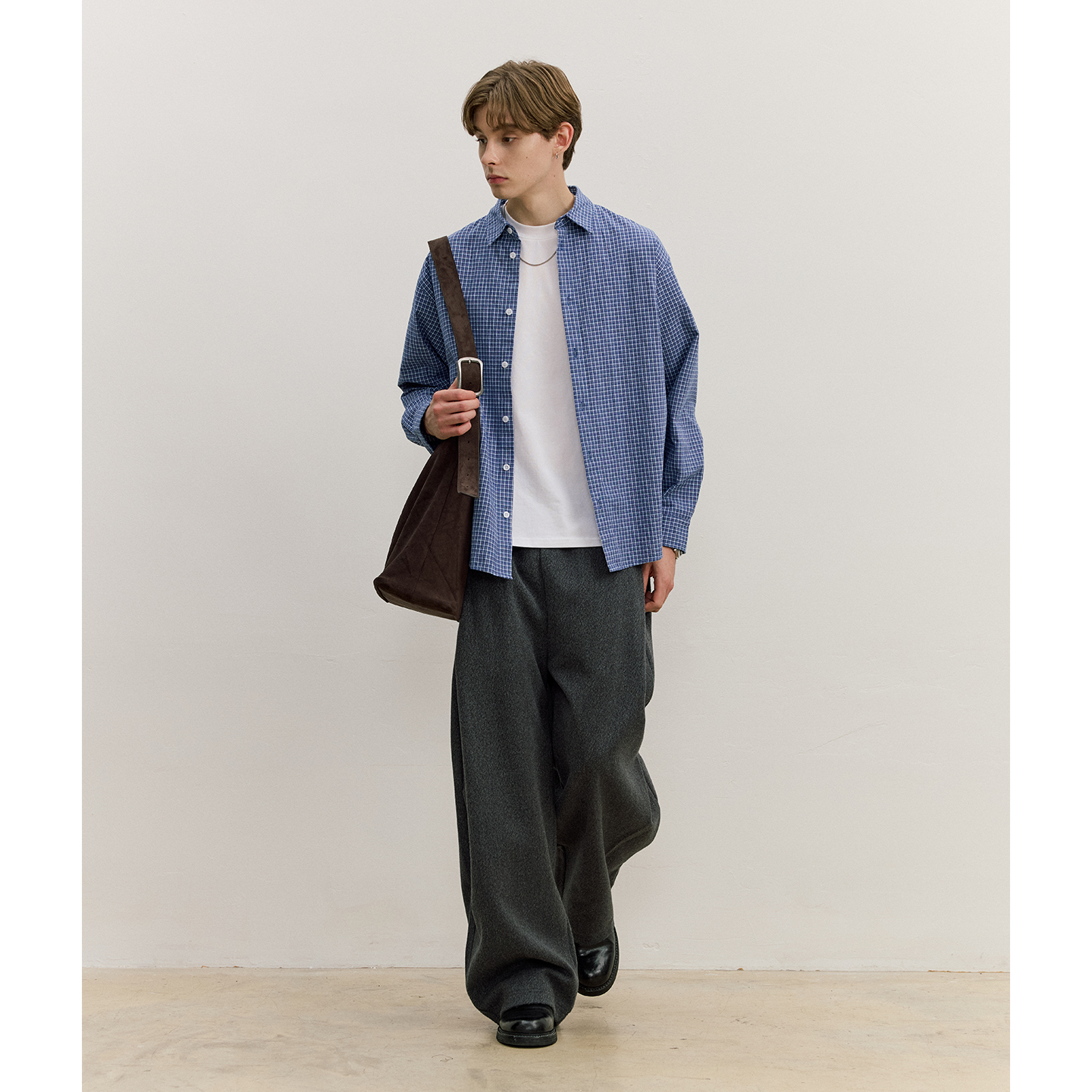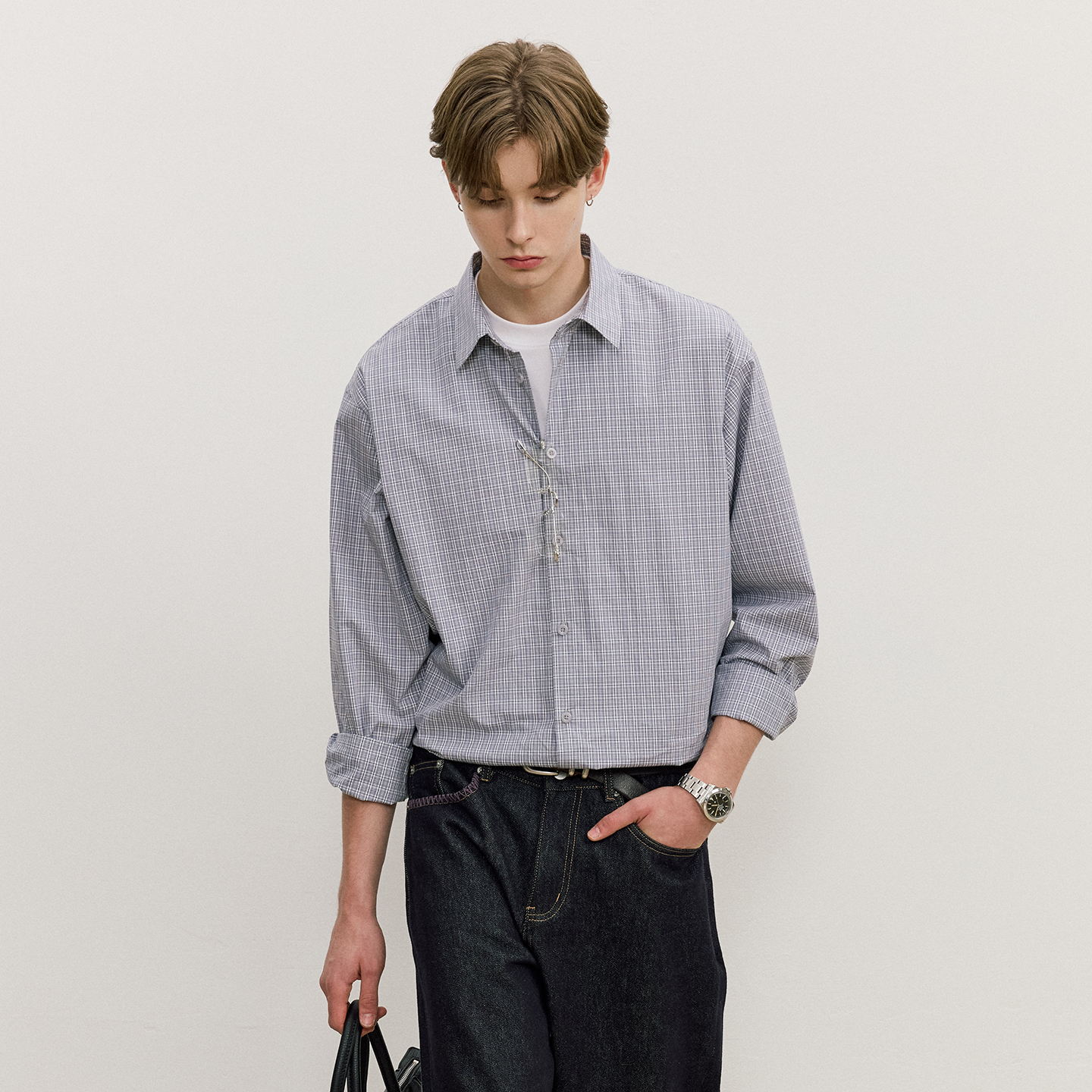 VMCL高智感色织细格纹宽松休闲纯棉蓝色格子衬衫男25AW vermicell