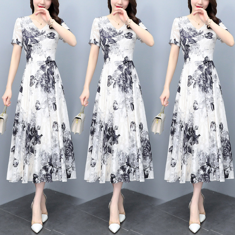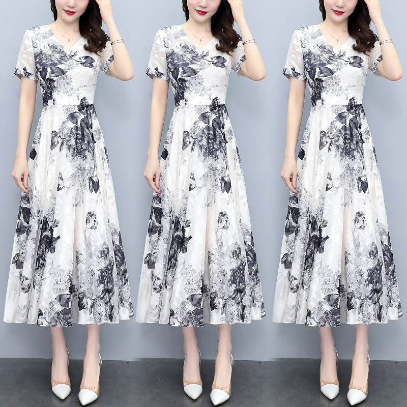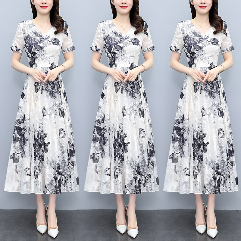 中年妈妈夏装雪纺连衣裙40岁50女夏季洋气高贵大码遮肚子减龄裙子