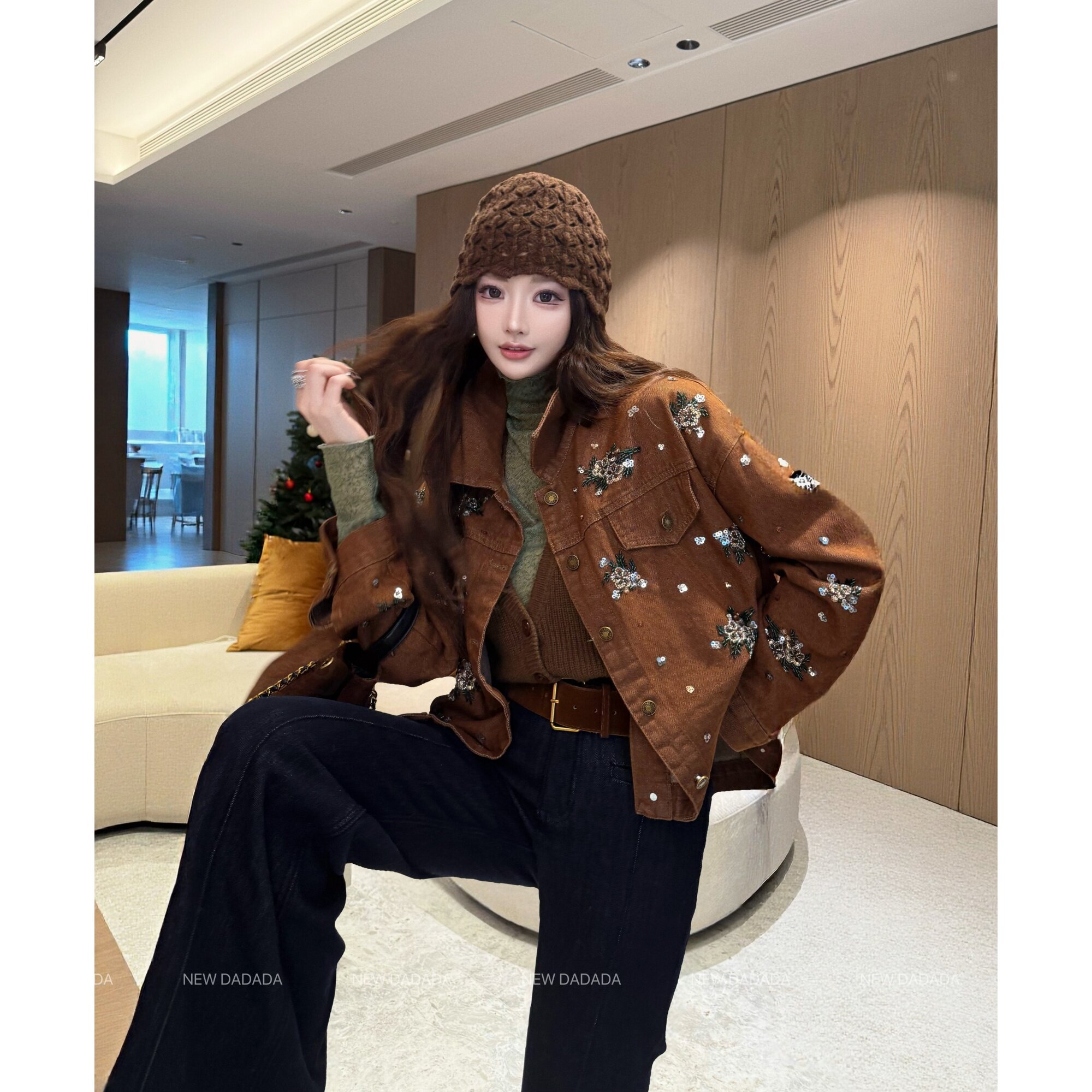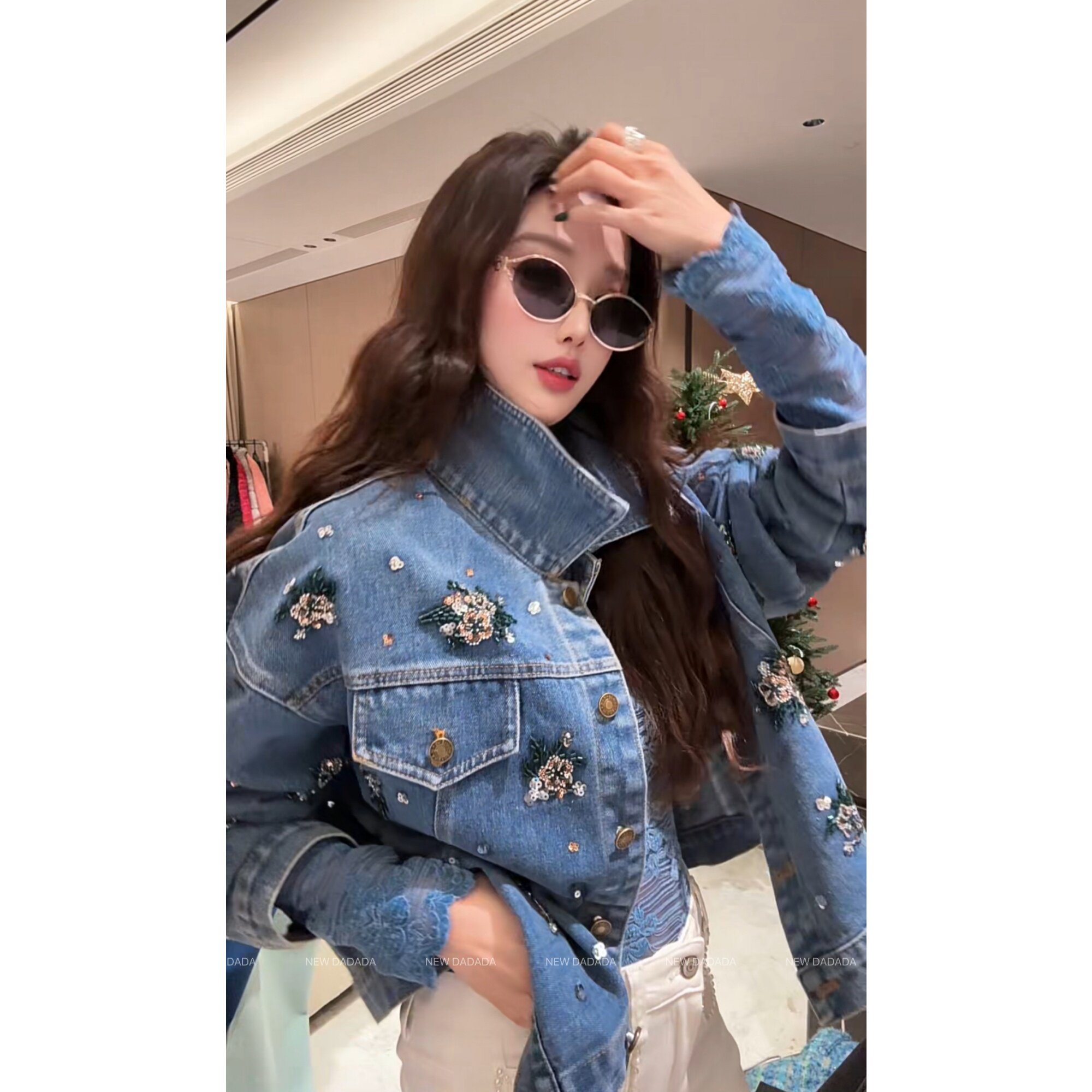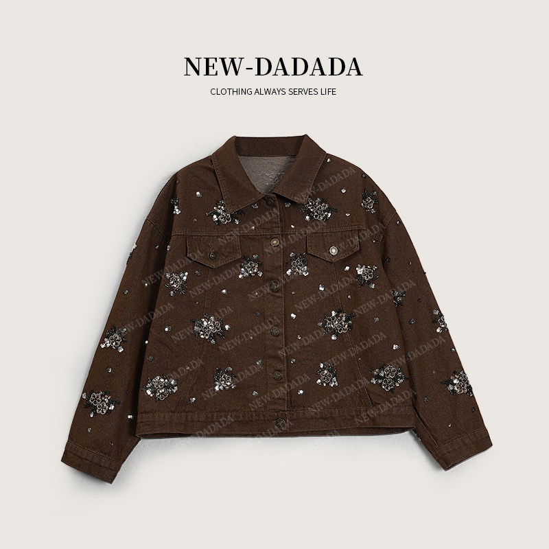 NEW DADADA【复古焦糖碎钻】2026新款牛仔短外套女时髦洋气小个子