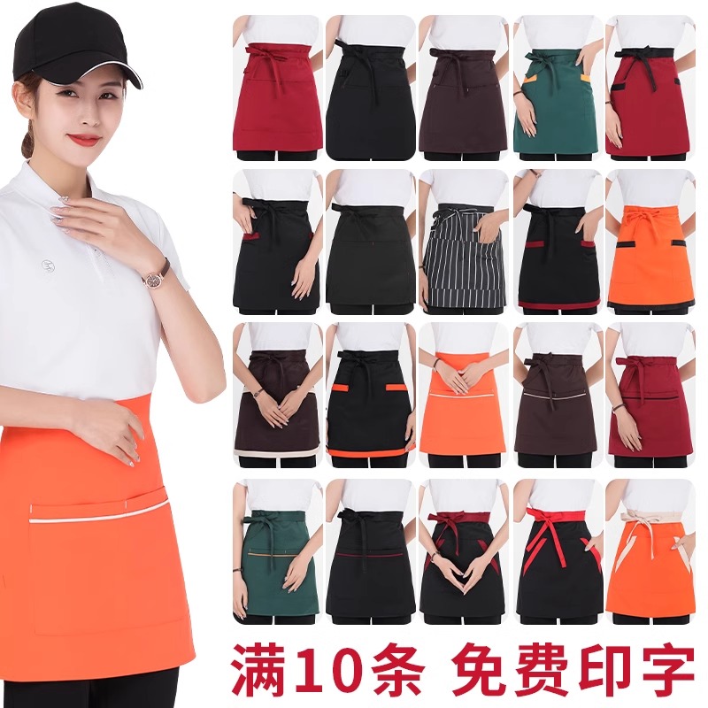 厨师半身围裙定制logo印字男餐厅厨房家用服务员半截围腰工作服女