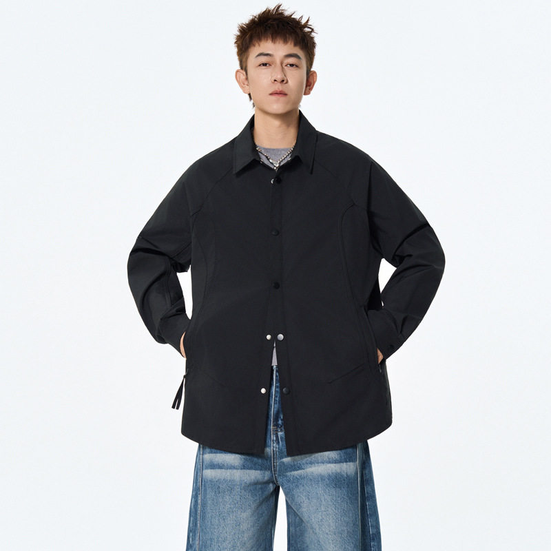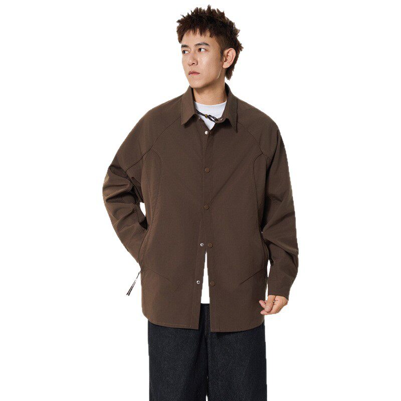 美式复古长袖衬衫男士春秋季新款高级感痞帅衬衣工装外套