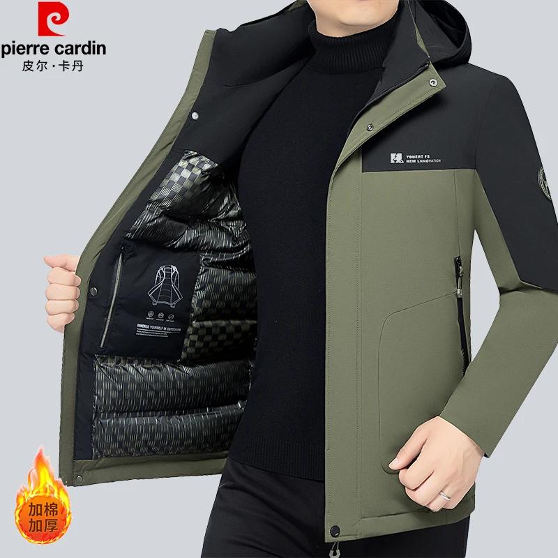 皮尔卡丹正品男士加厚保暖外套冬季休闲短款连帽棉衣中年男装棉服