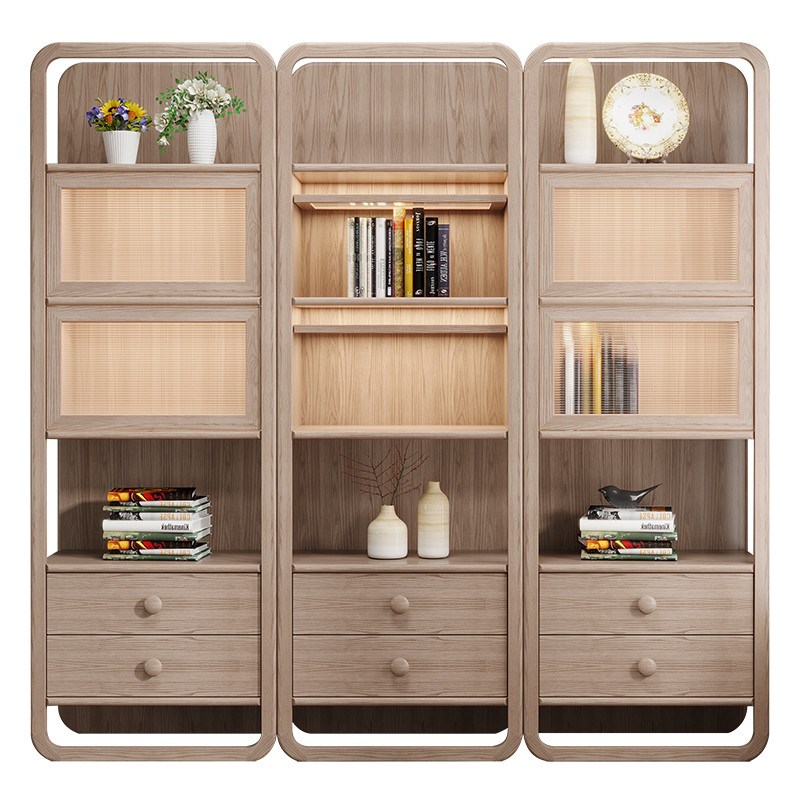 全实木书柜带玻璃门 简约落地白蜡木储物收纳柜 日式自由组合书橱