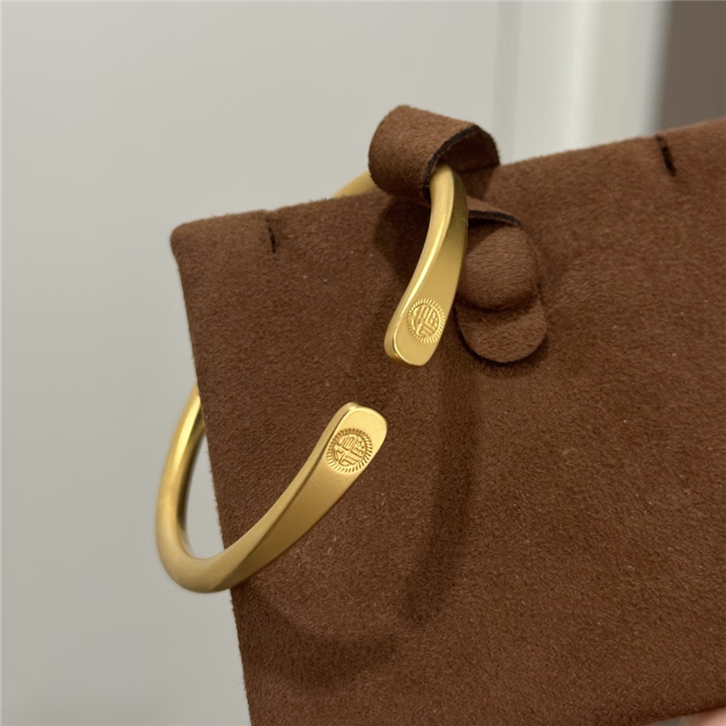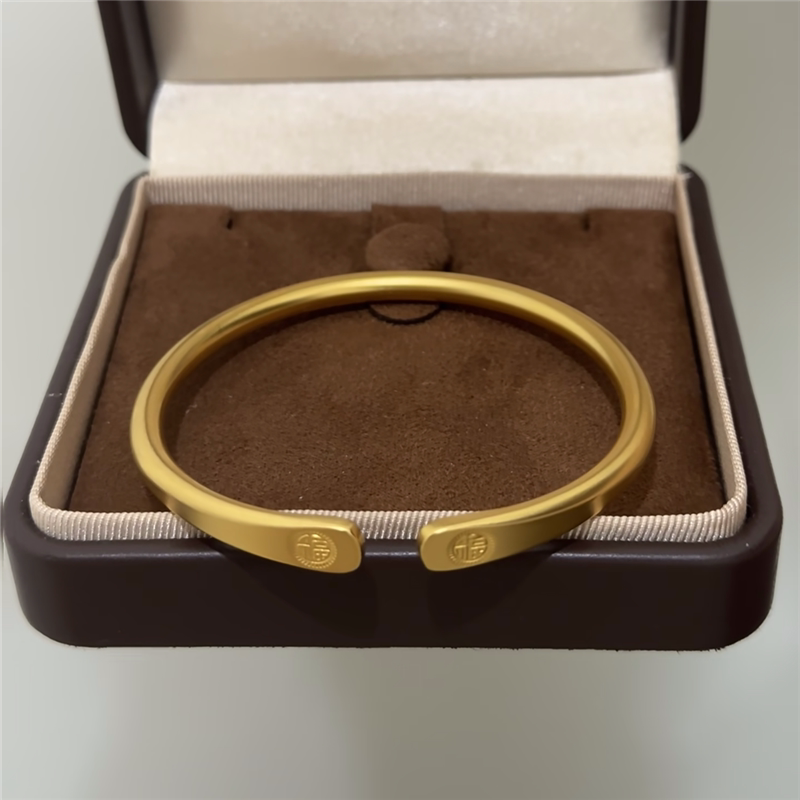 古法沙金雕刻福字开口手镯女
