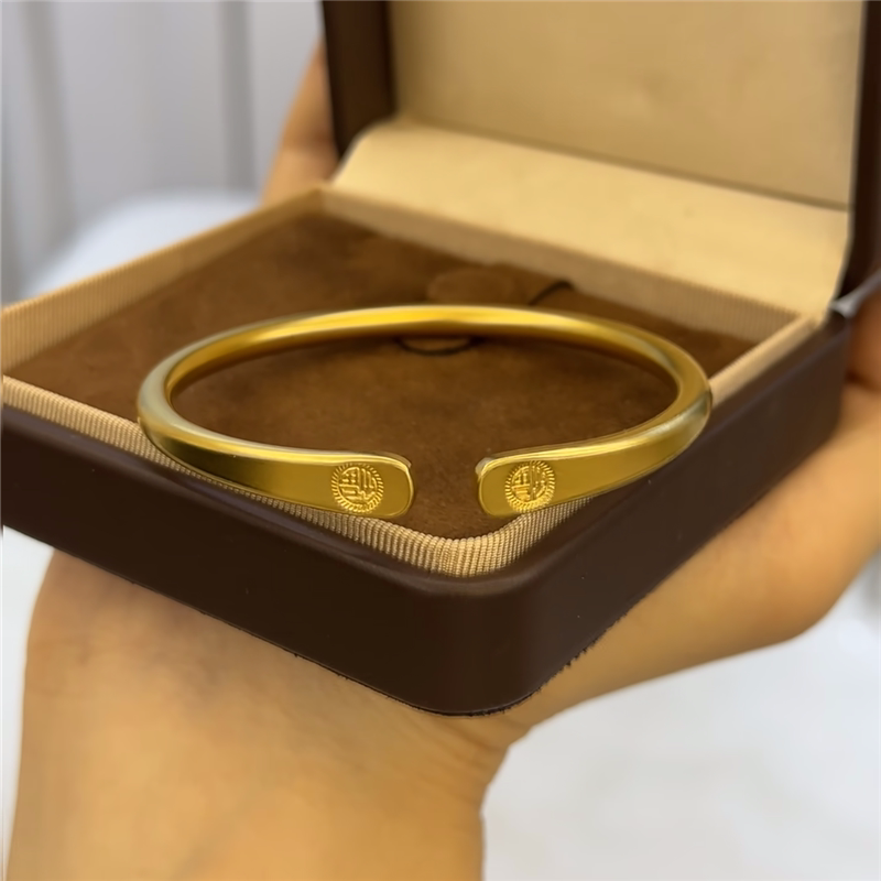 古法传承沙金雕刻福字开口手镯女仿真黄金实心素圈镯子送长辈妈妈