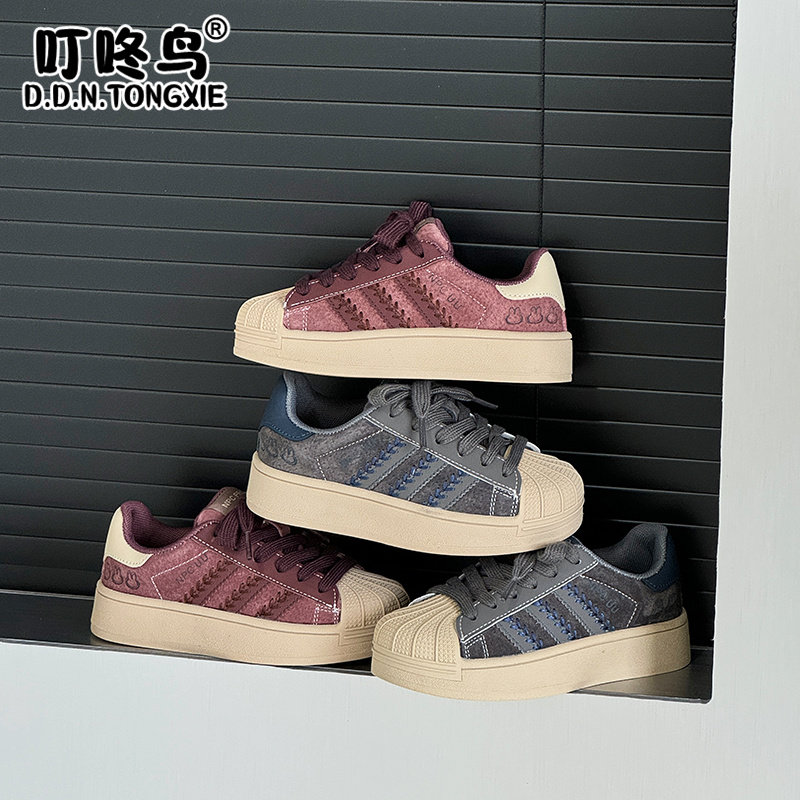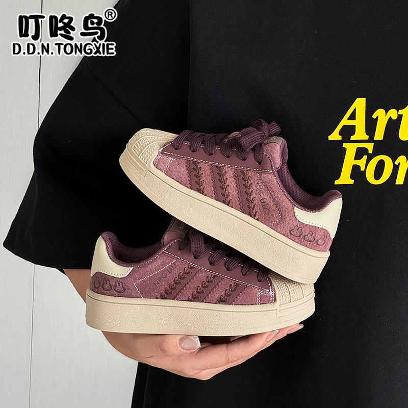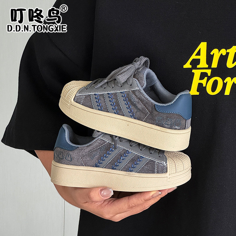 女童真皮潮色贝壳鞋2025秋季新款男童鞋子休闲鞋儿童小兔子运动鞋