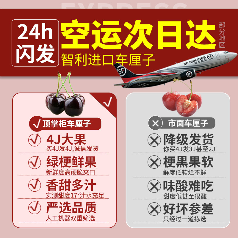现货顺丰空运4J智利车厘子新鲜水果樱桃脆甜孕妇当季整箱礼盒